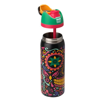 Celebrate the present. Remember the past. Inspired by Dia de los Muertos, this bottle does both, with bold sugar skull art that’s bright in the light and glows in the dark—giving you spirited sips any time of day.
