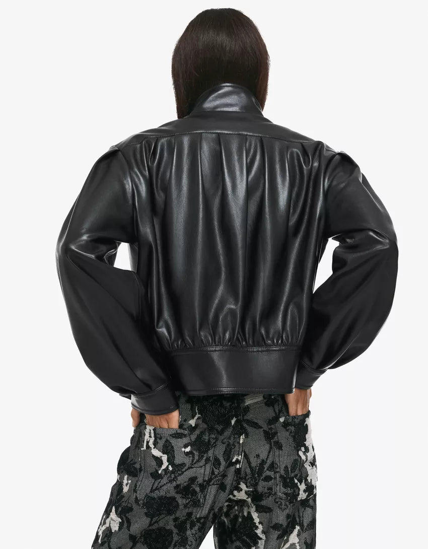 ‘80s leather effect jacket. Available in black.