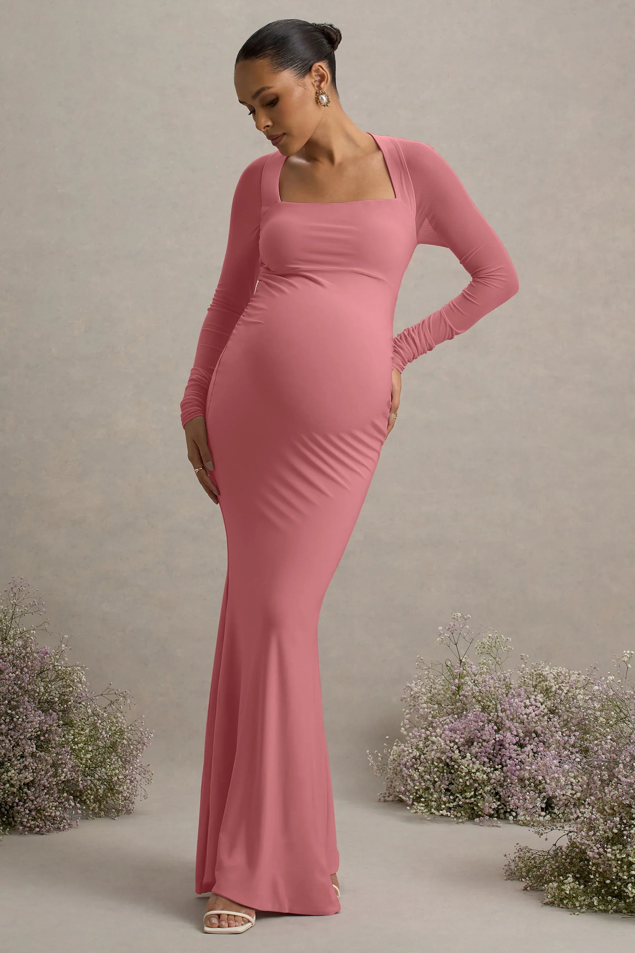 A dashing choice for a special event, Abeam is bound to make you feel ethereal. Crafted in our premium blush pink jersey, this maxi showcases a stunning bump hugging silhouette and exquisite long mesh sleeves. Style your look with some chic heeled sandals for the perfect ensemble.