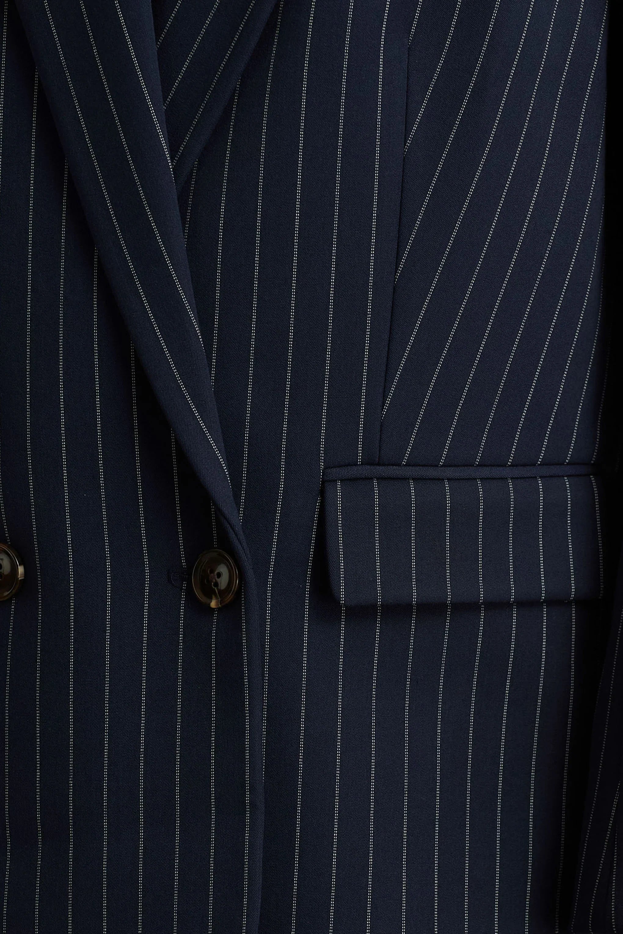 Premium crepe in Navy Pinstripe (79% Polyester 17% Viscose 4% Elastane)