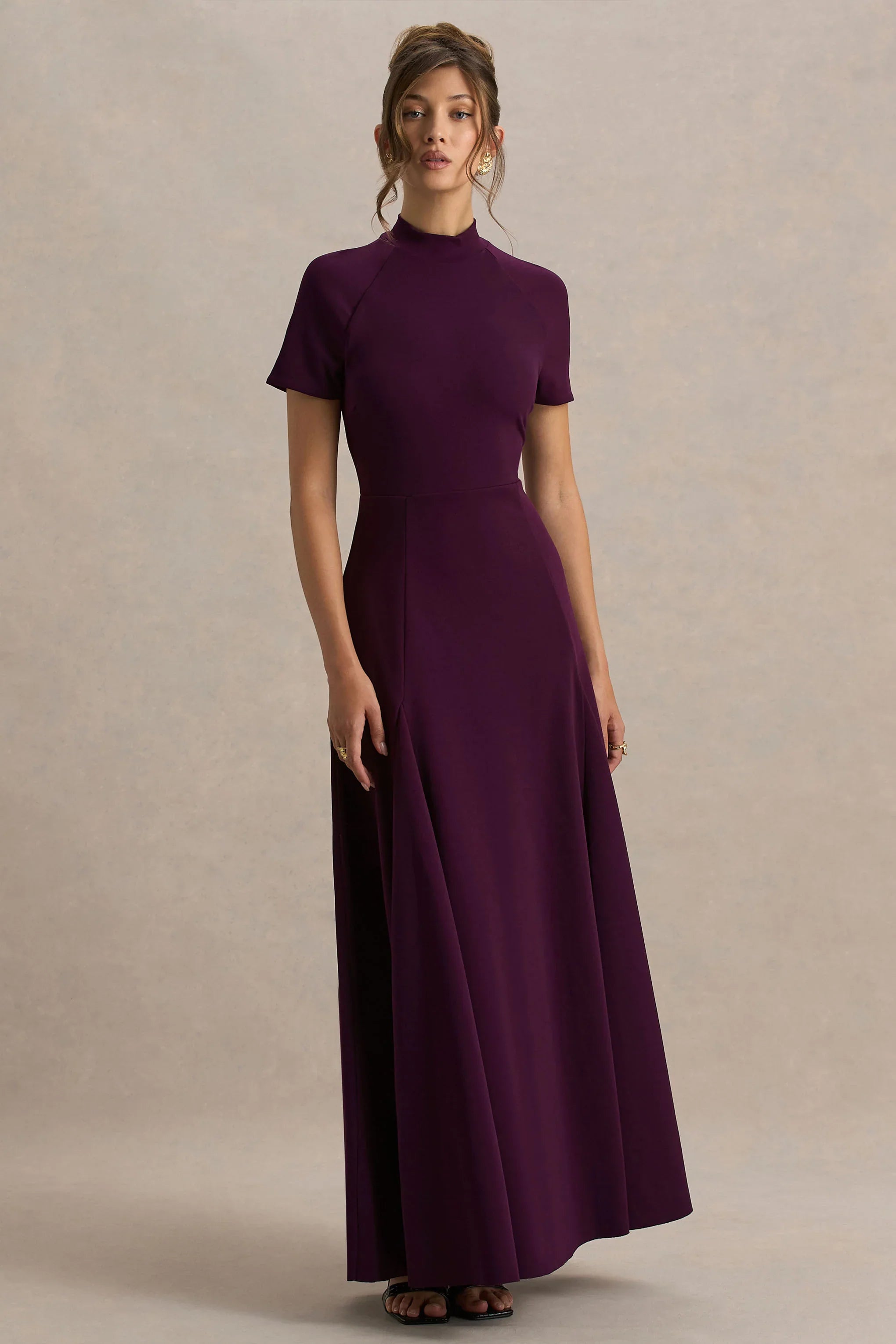 Designed to embody elegance and sophistication, say hello to the Alea maxi dress. Cut from our premium scuba crepe in a dreamy burgundy shade, this dress flatters and sculpts in all the right places. Finished with a high neckline and short sleeves, this dress offers a refined touch while the flowing skirt moves effortlessly with you. Perfect for special occasions this season.