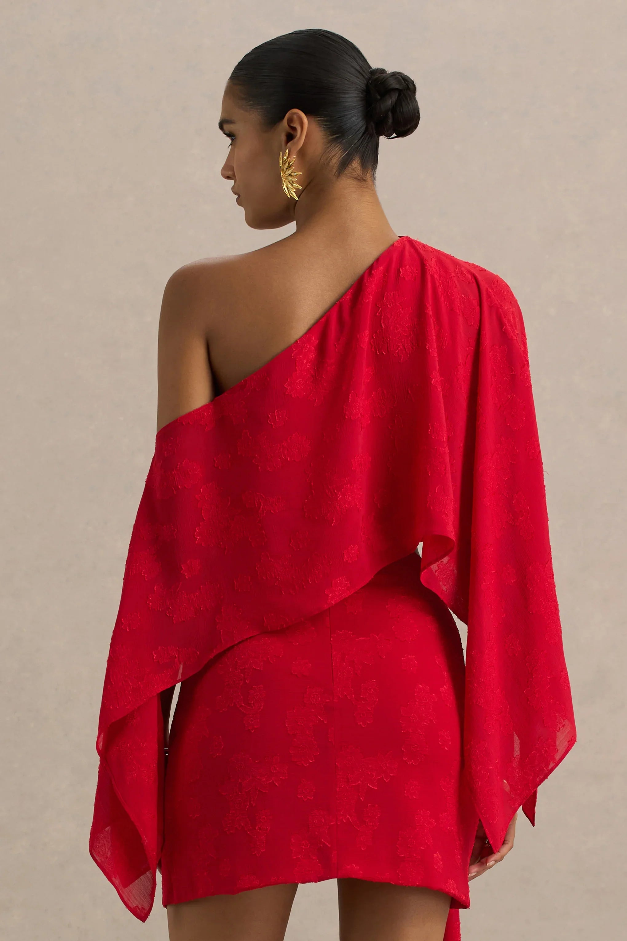 Summer chic redefined in our Aruba crop top. Crafted from a rich red shade of our premium satin devore, this piece effortlessly skims over your body for a look of elegance. Finished with a modern asymmetric neckline and long sleeves, Aruba can effortlessly transcend from day-to-night all season long with our Melania skirt.