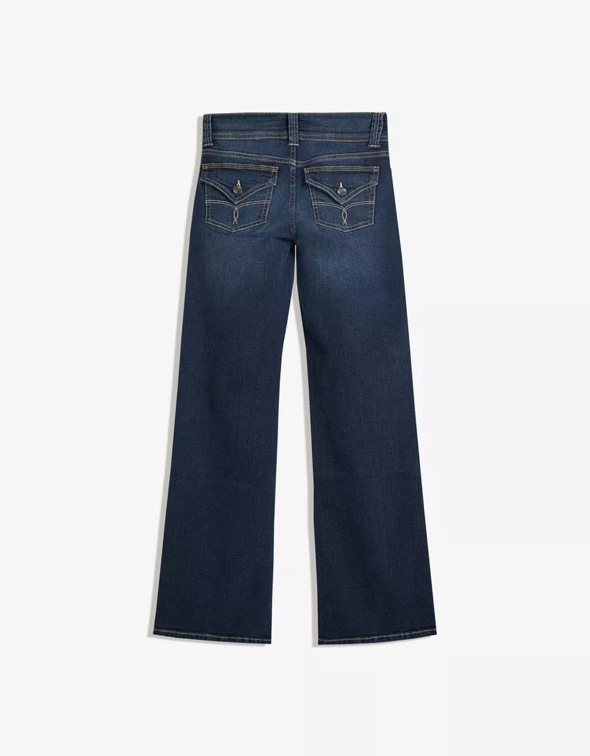Bootcut jeans with flaps. Available in navy, grey, black, light blue.