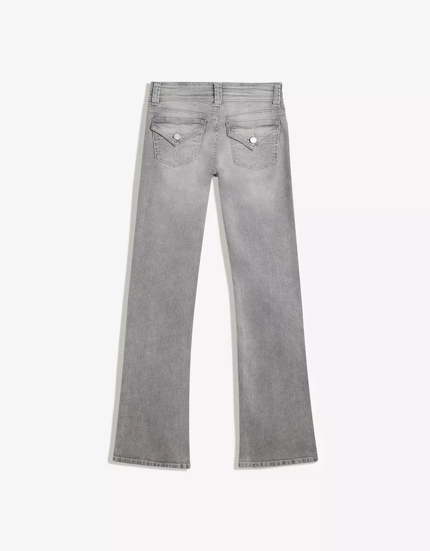 Bootcut jeans with flaps. Available in grey, navy, black, light blue.