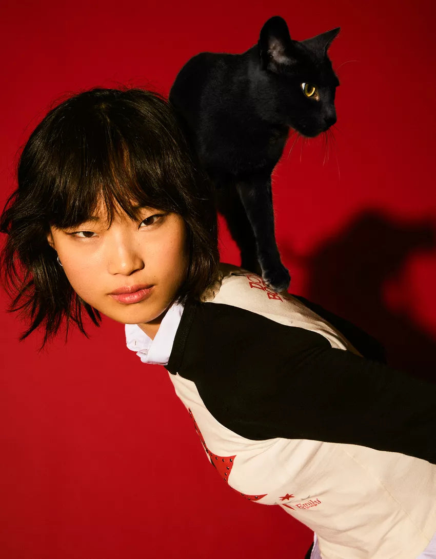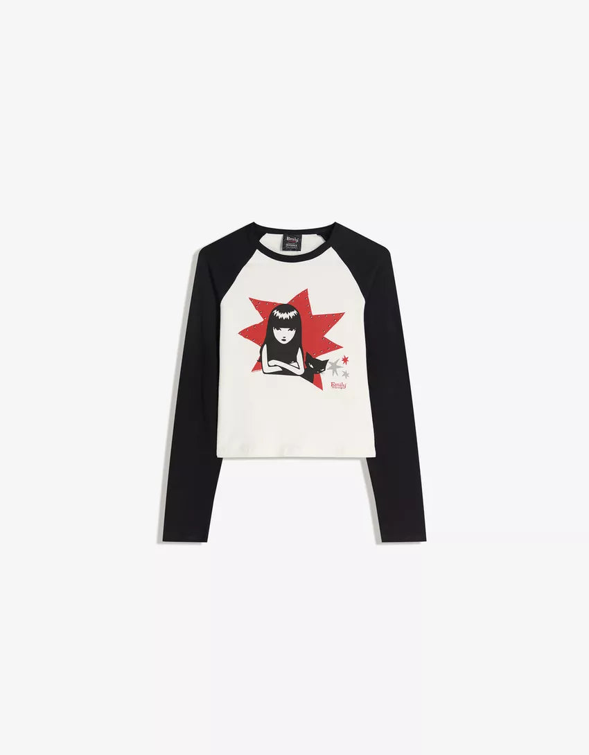 Emily the Strange print long sleeve T-shirt. Available in off white.