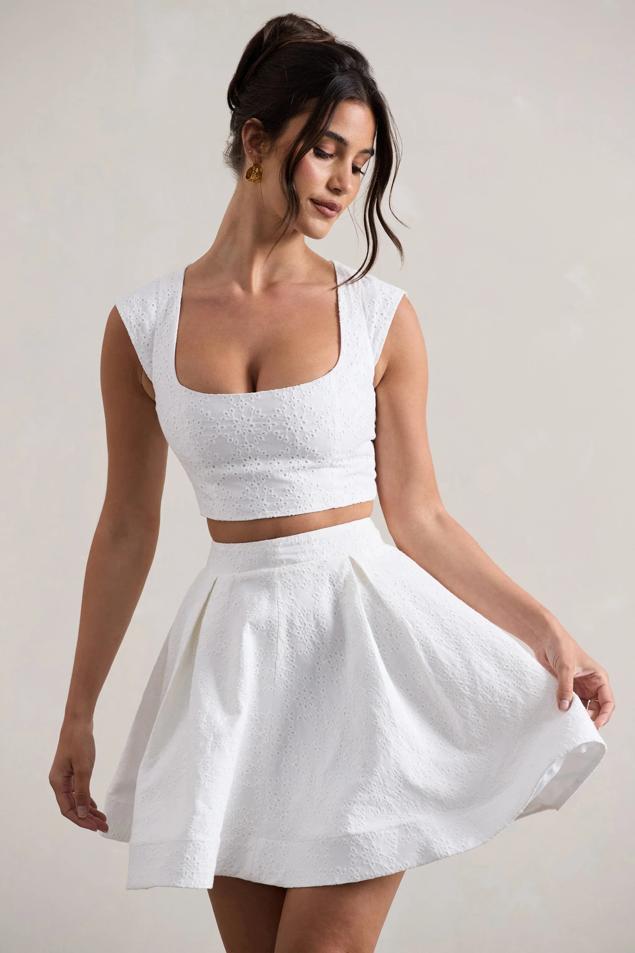 The perfect elegant crop top for any occasion is Estela. Arriving in an opulent white lace, Estela boasts a flattering square neckline and a cropped fit. Pair this crop top with our Jardenne skirt for the ultimate garden party look.