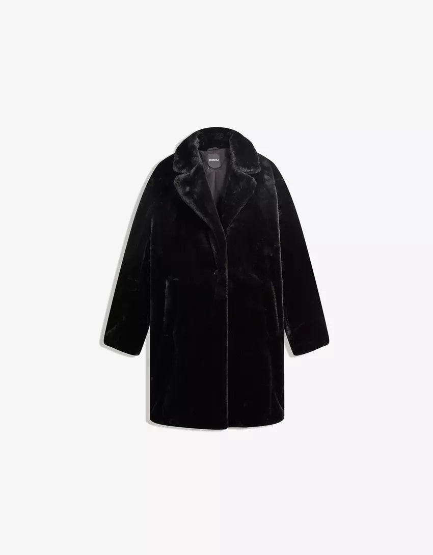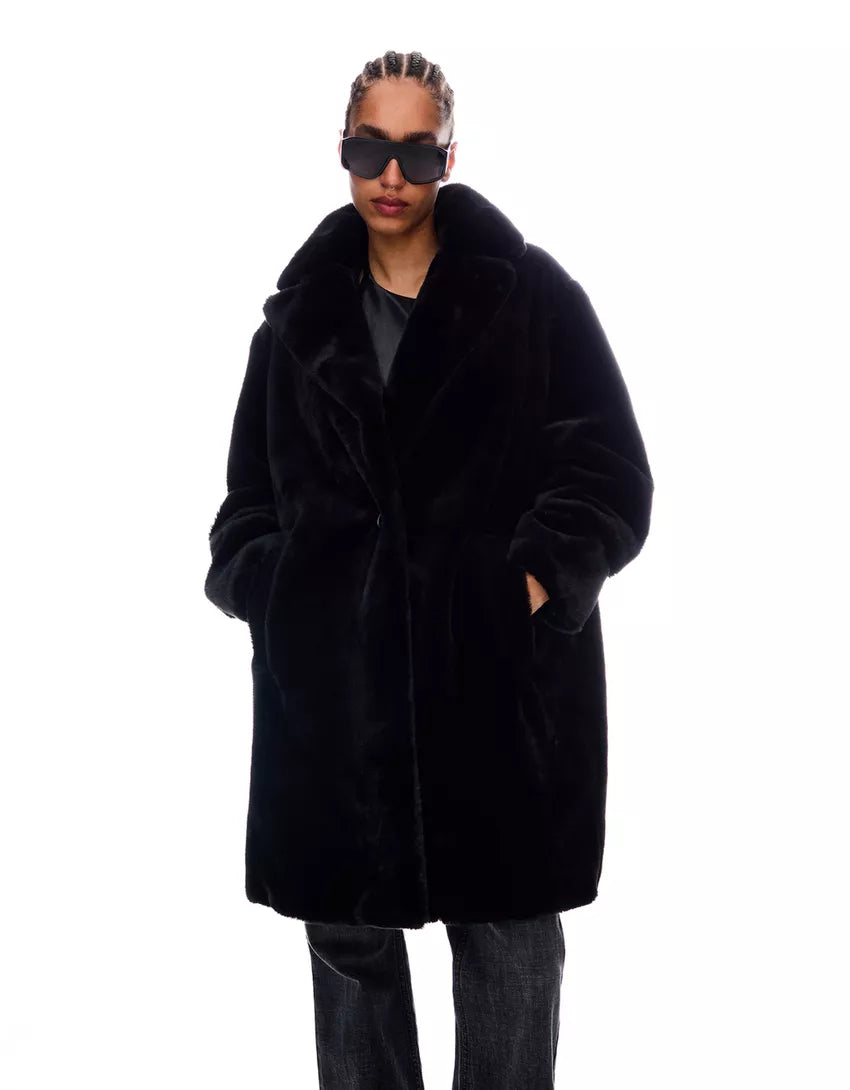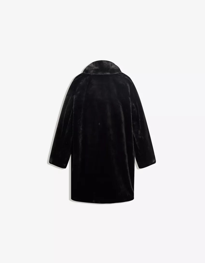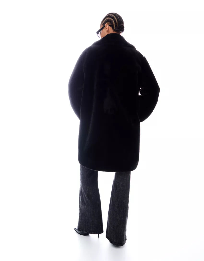 Faux fur coat. Available in black, cream.