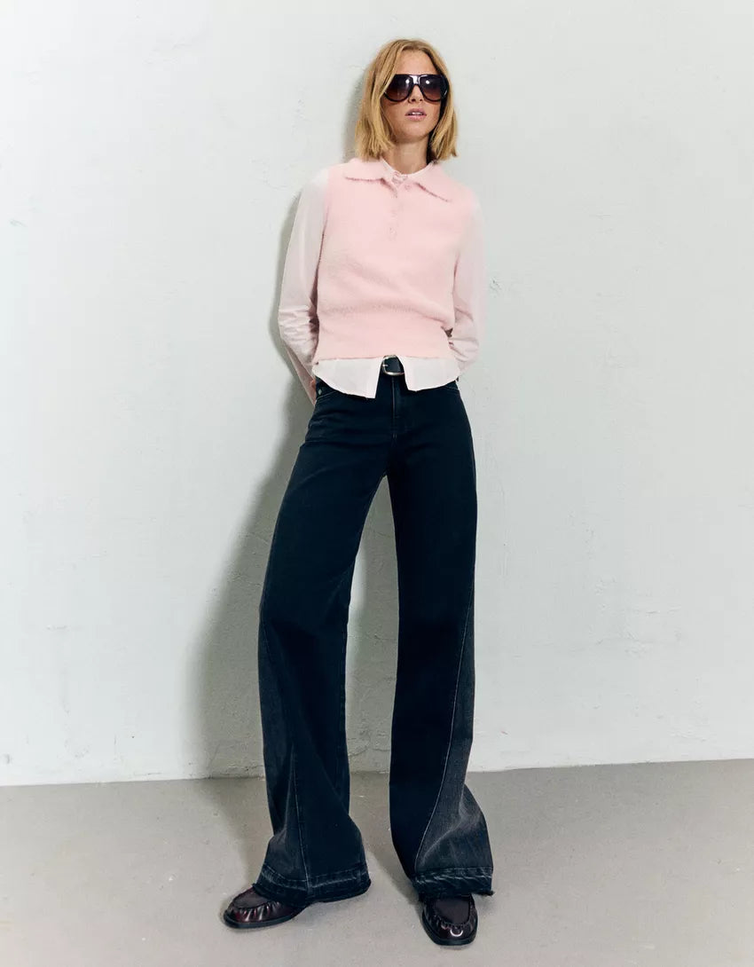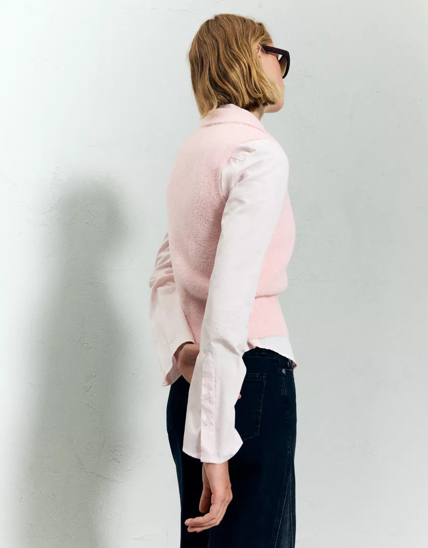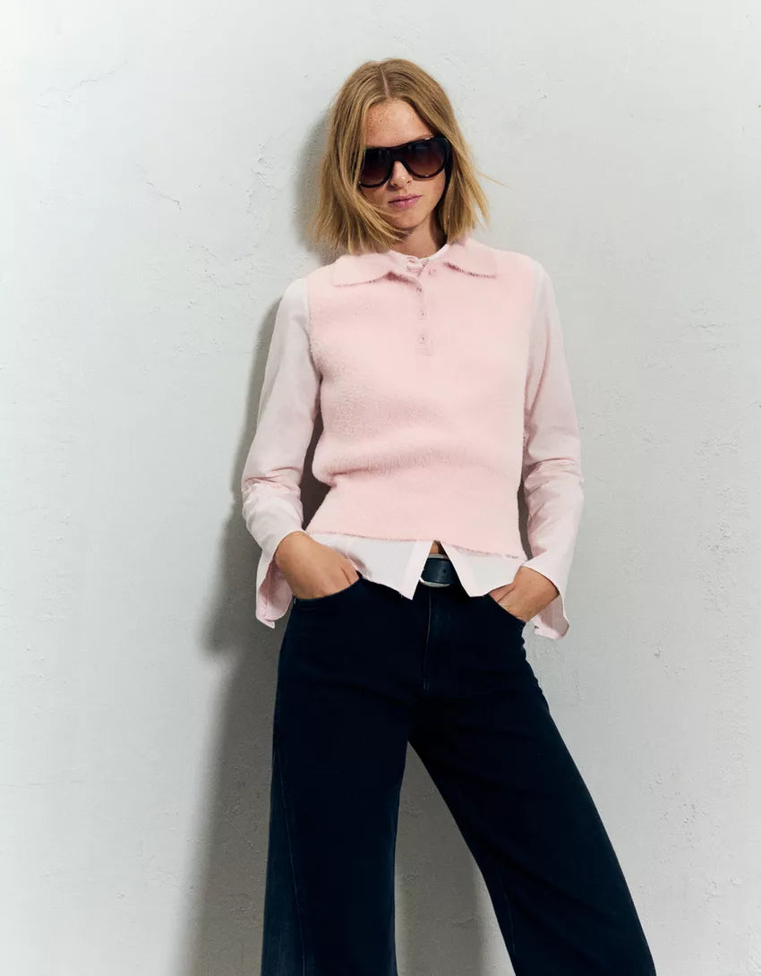 Faux fur polo collar vest. Available in pink.