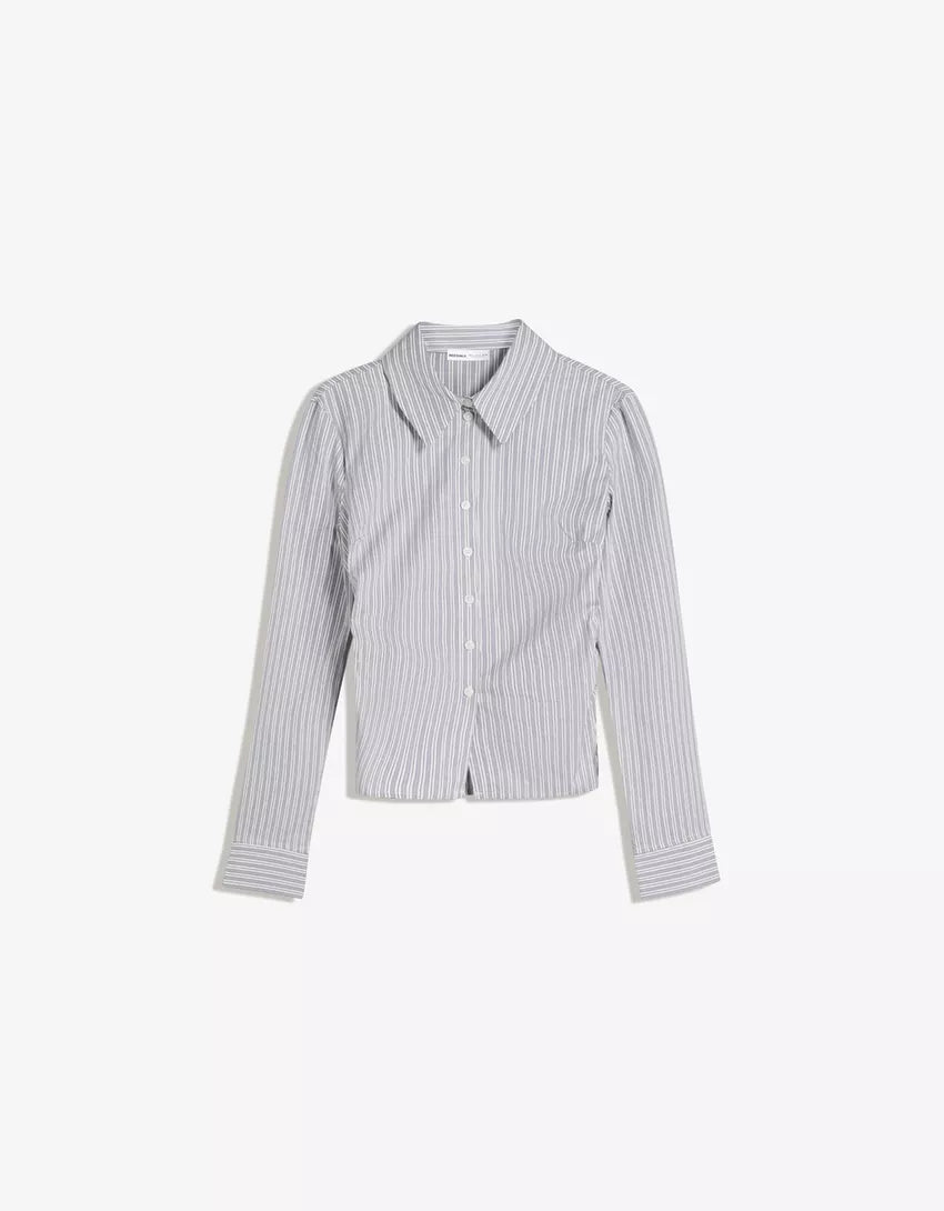 Fitted shirt with gathered side. Available in grey, blue, pink, white.