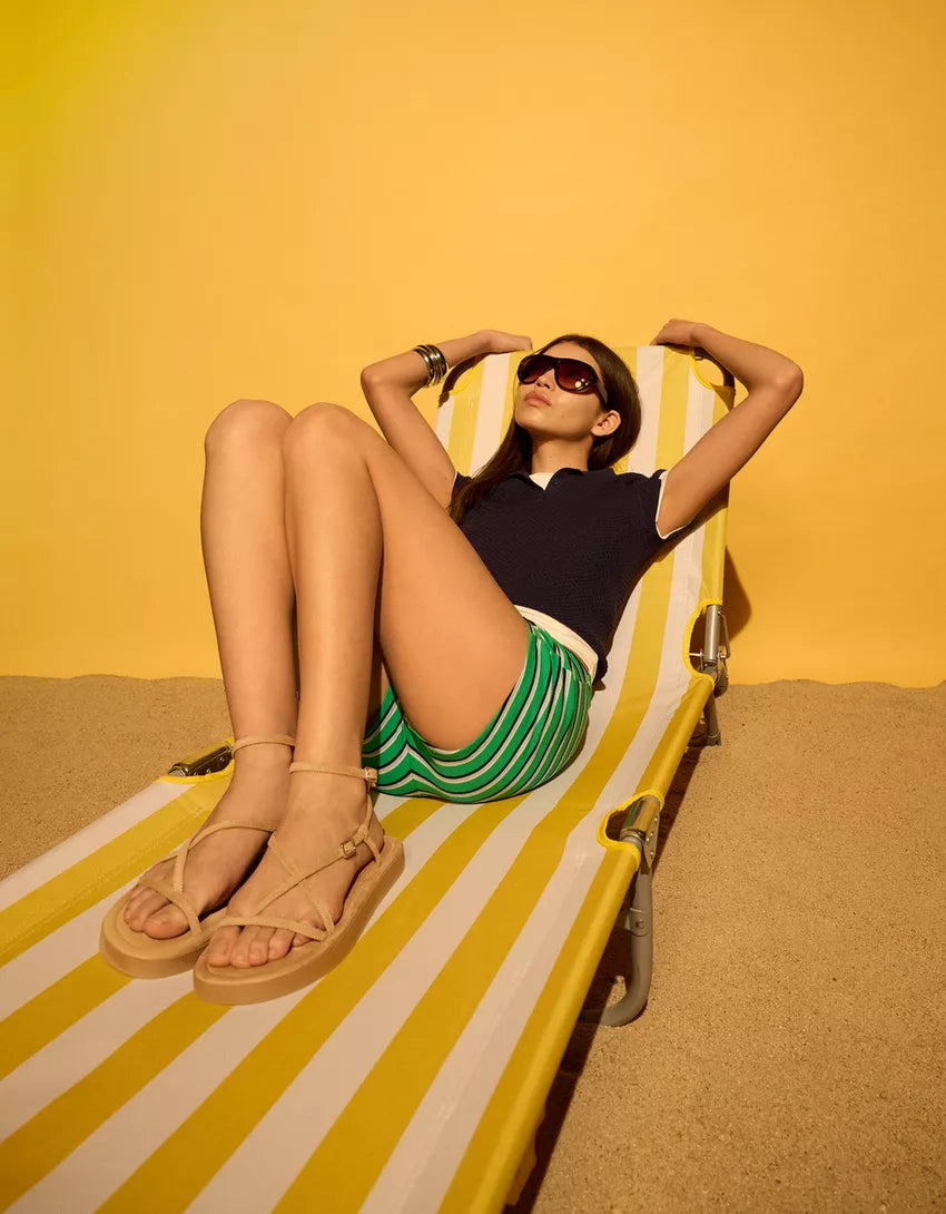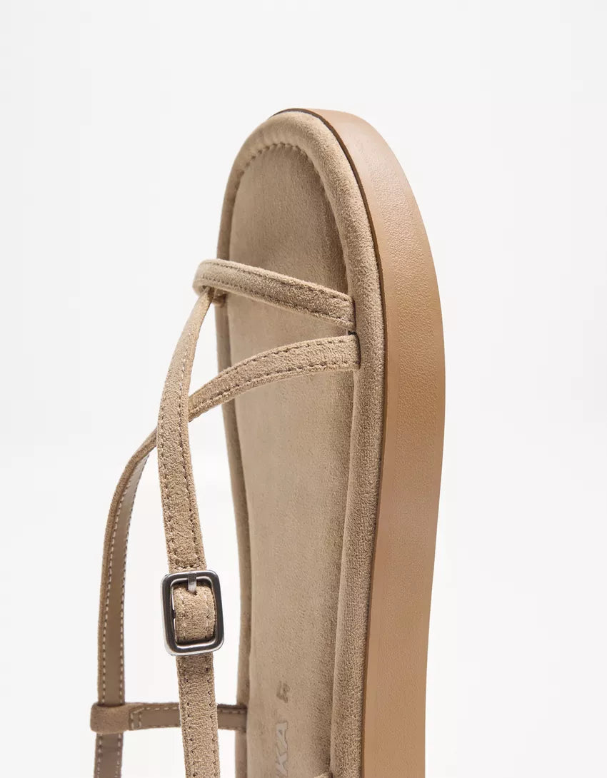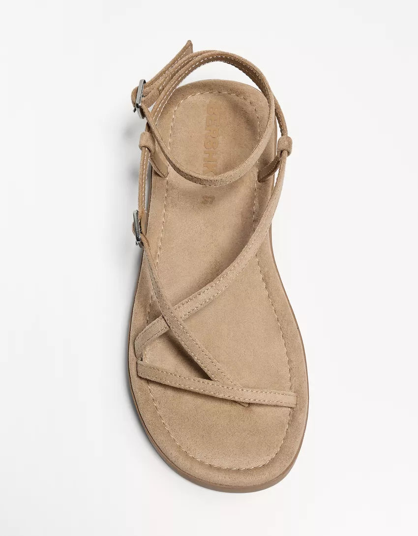 Flat sandals with straps. Available in leather.