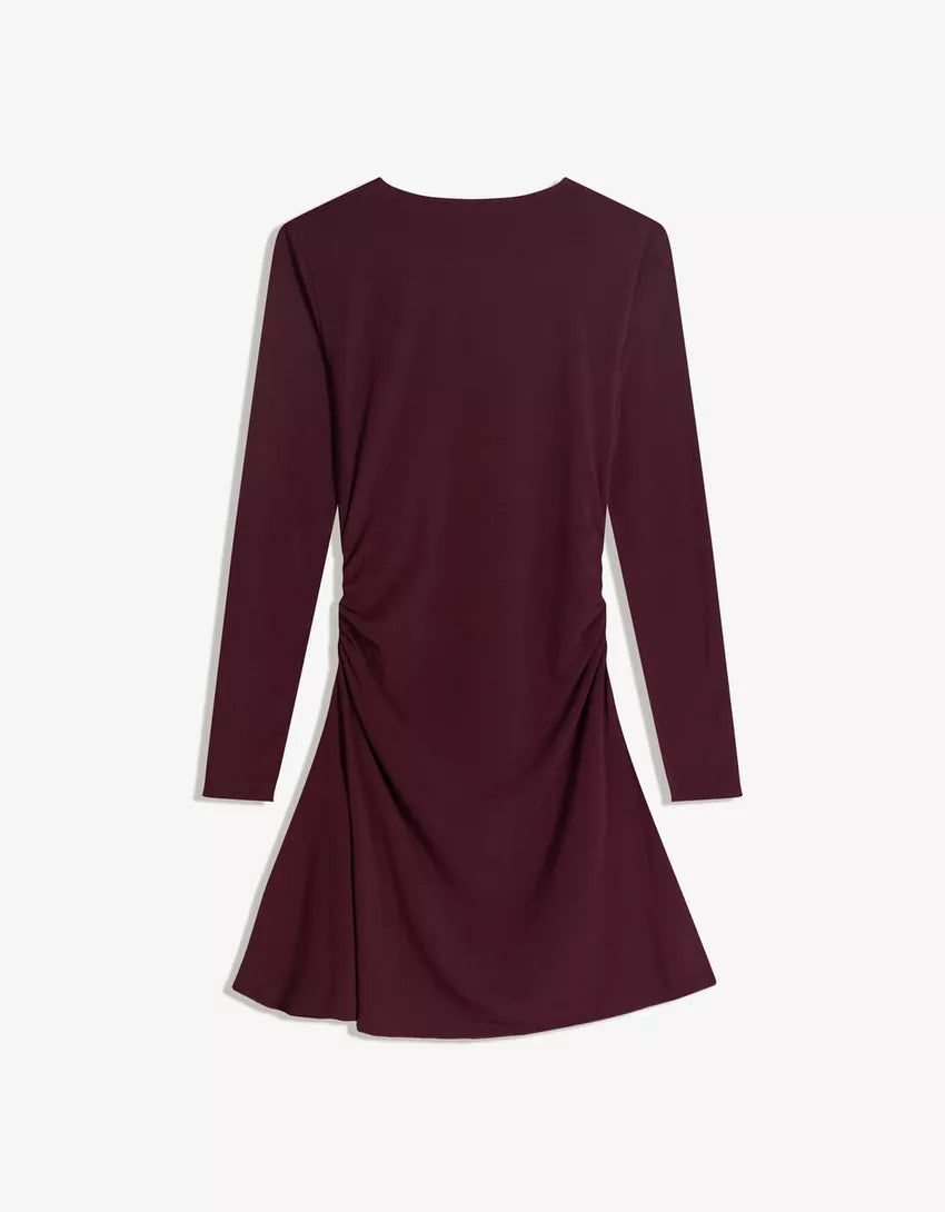 Gathered long sleeve mini dress. Available in burgundy, dark grey.