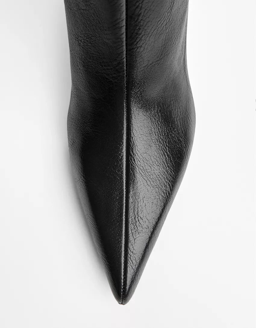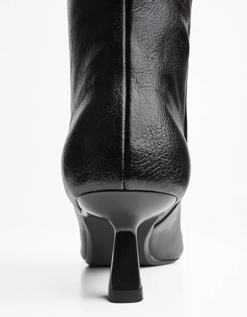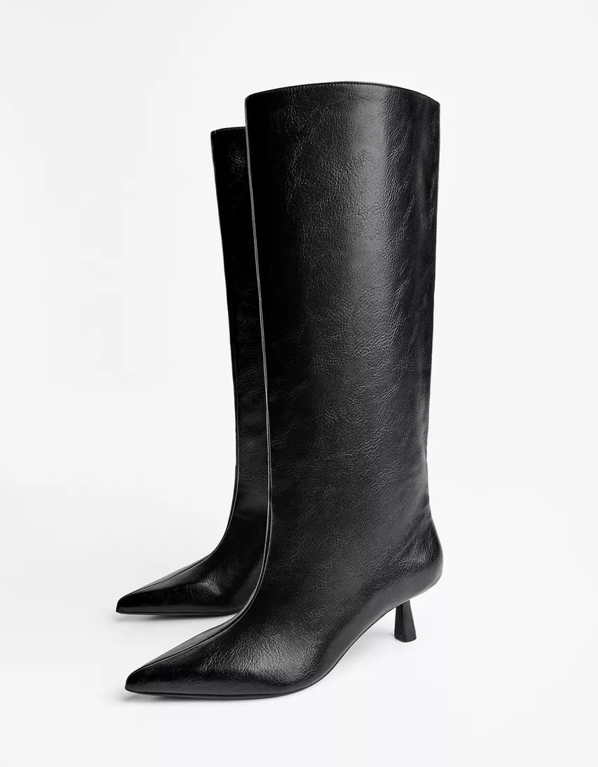 Kitten-heel boots. Available in black.