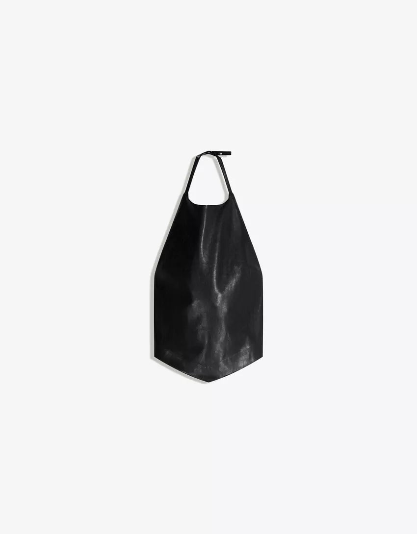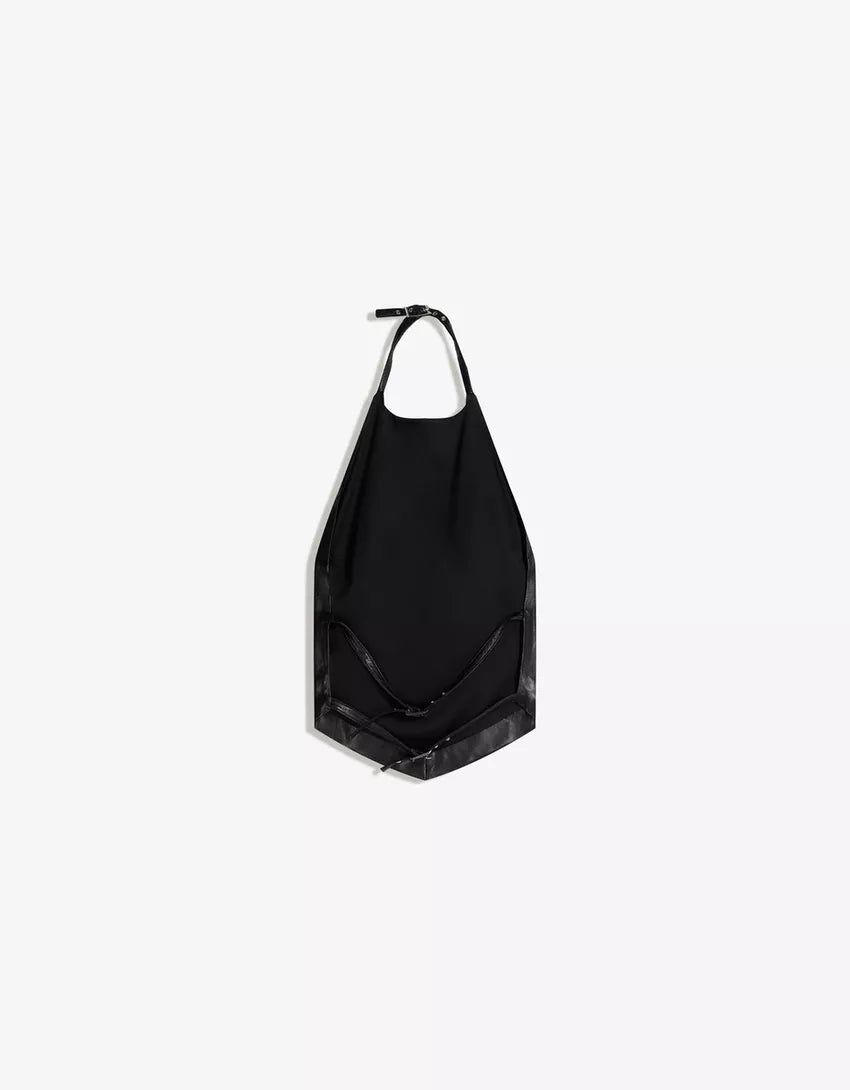 Leather effect halter top. Available in black, silver.