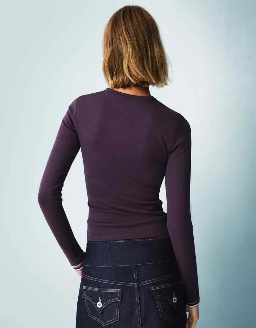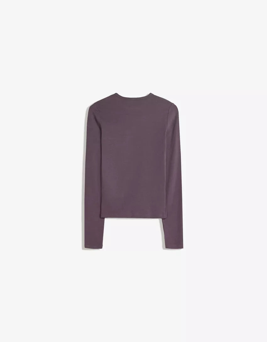 Long sleeve T-shirt. Available in violet, dark grey, off white, navy, green, black, pink, burgundy, brown.
