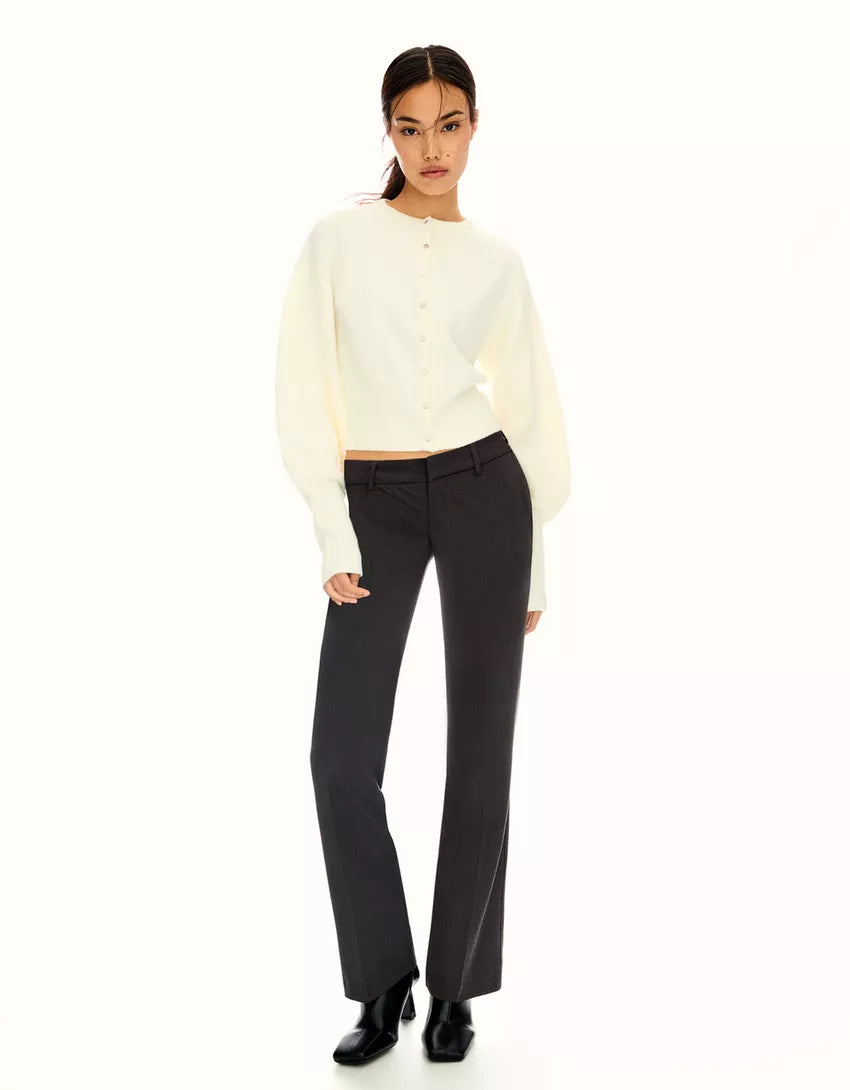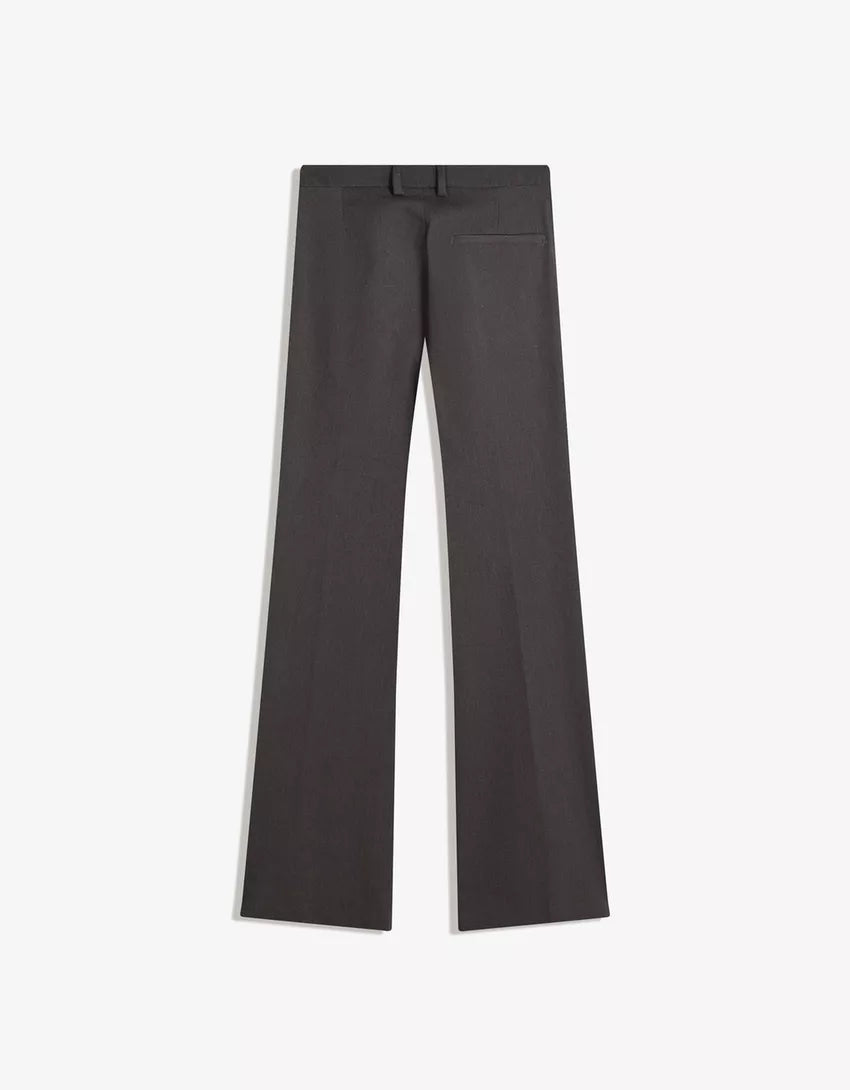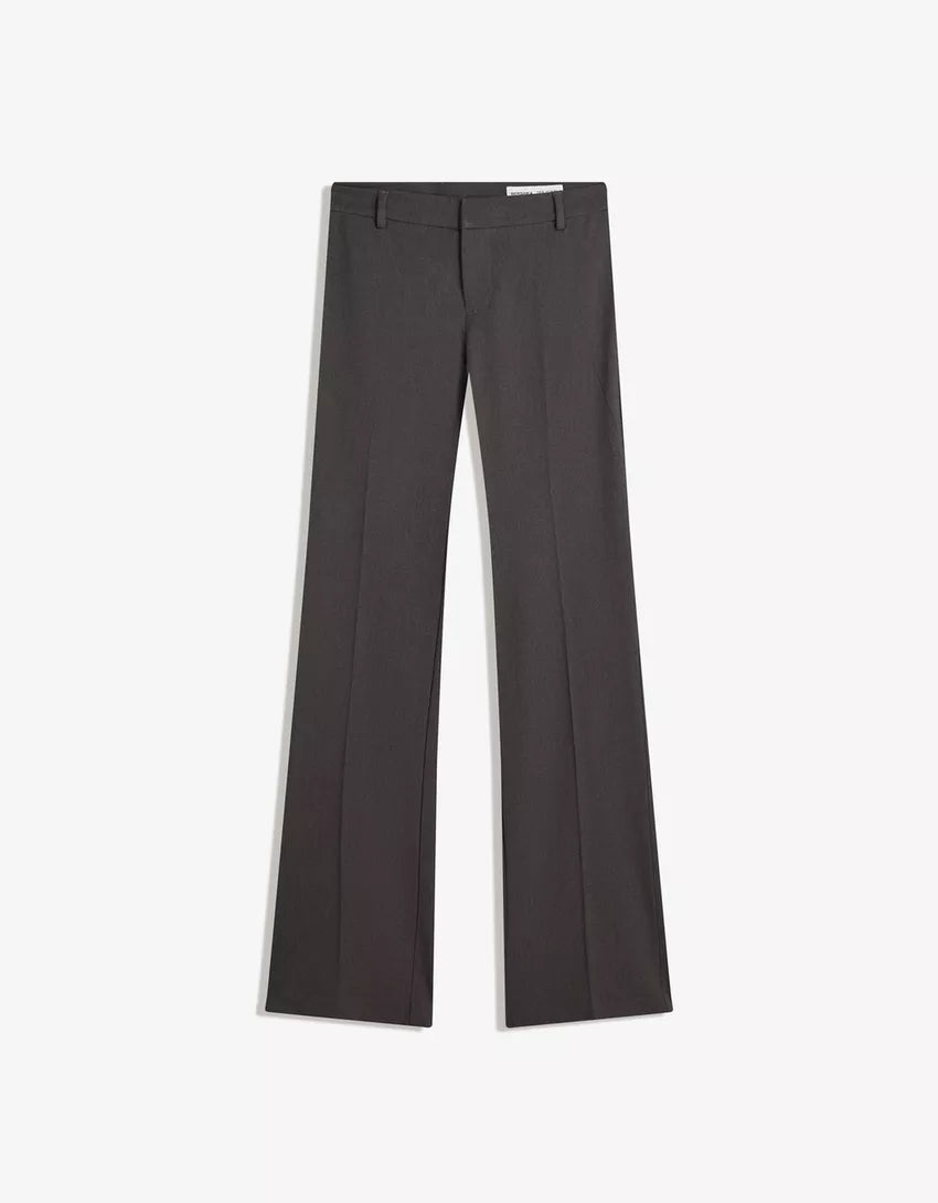 Low-rise boot-cut pants. Available in grey, black, navy, brown.