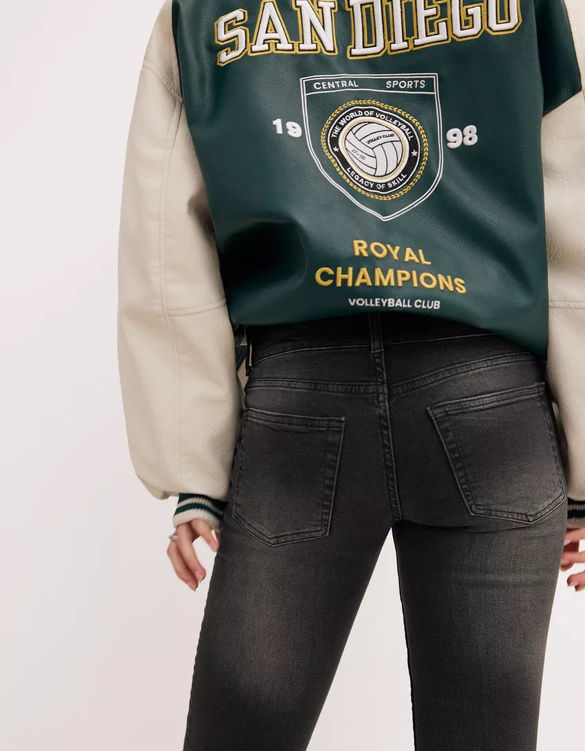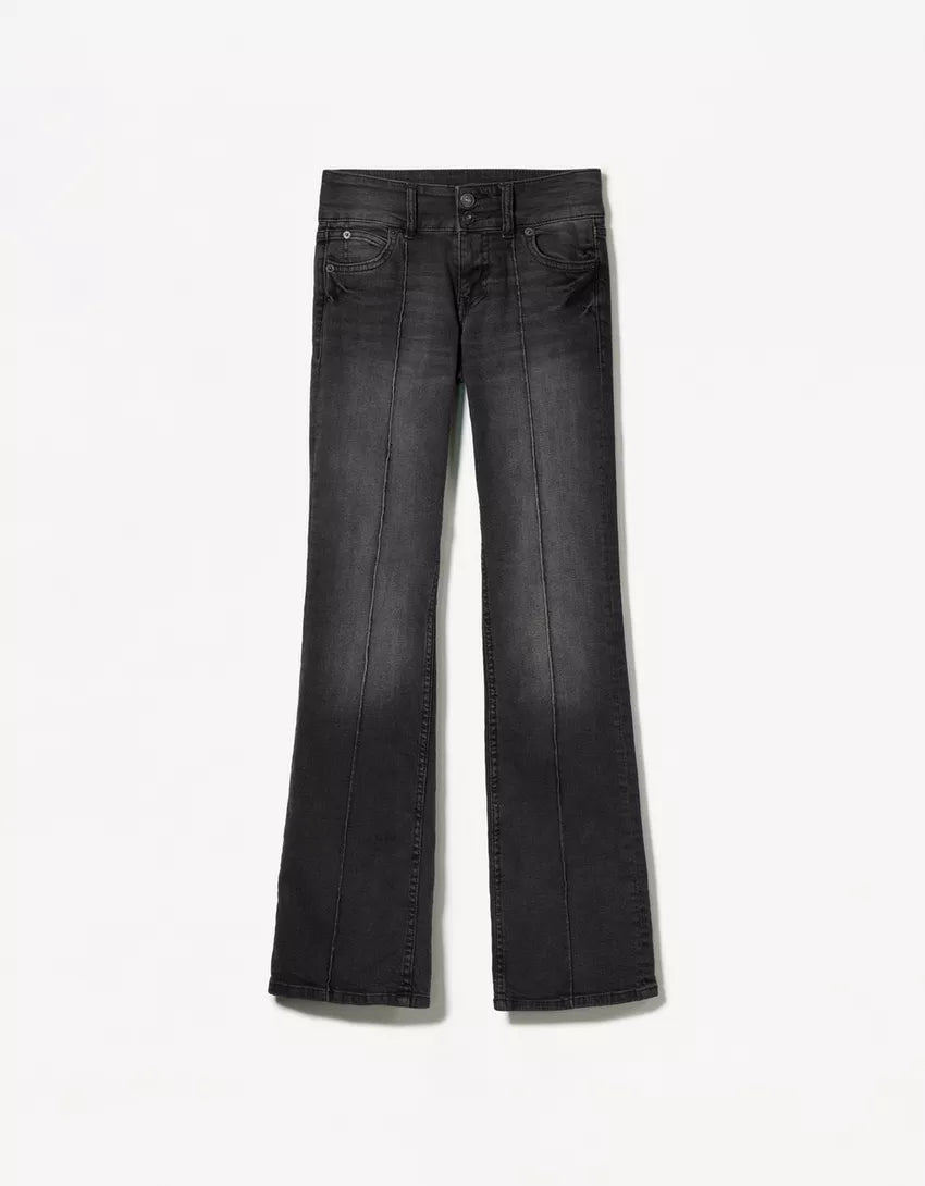 Low-rise bootcut jeans. Available in black, washed out blue, blue, cream, dark grey, light blue.
