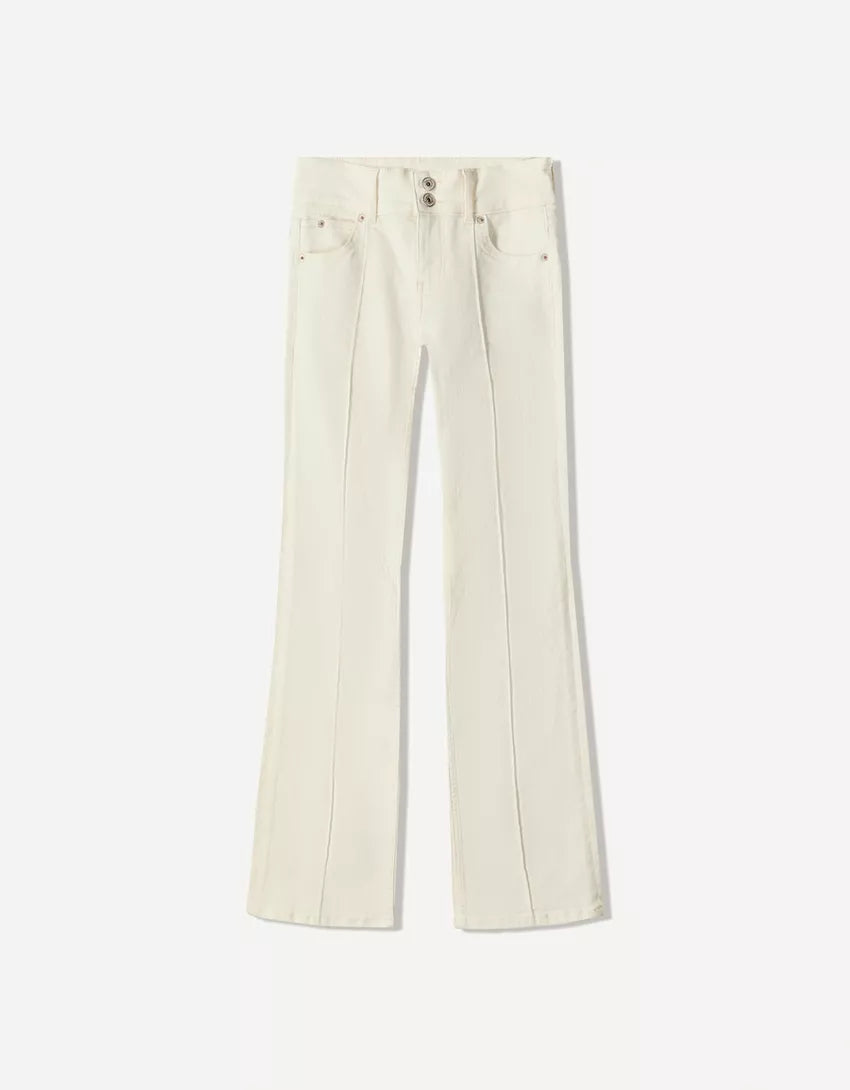 Low-rise bootcut jeans. Available in cream, washed out blue, blue, dark grey, light blue, black.