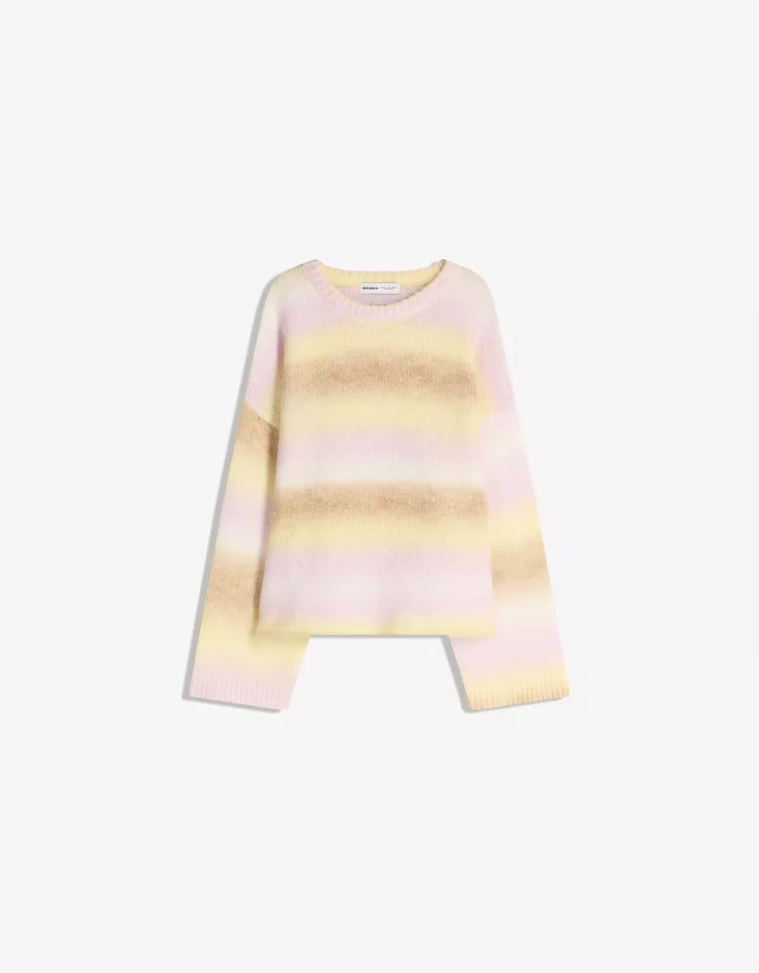 Multicolor knit sweater. Available in pink.