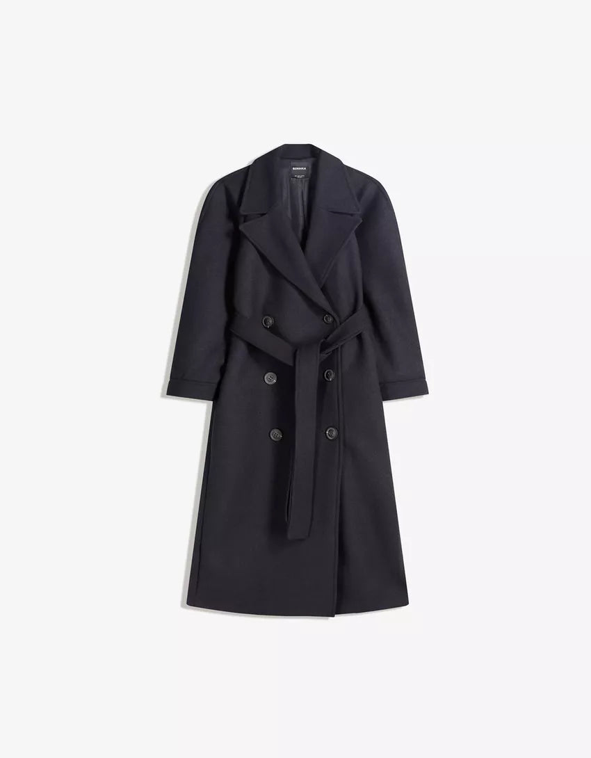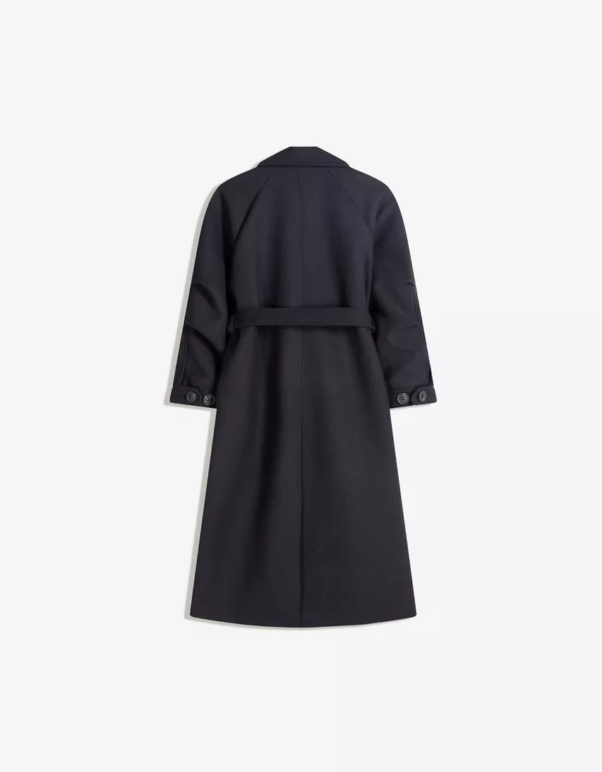 Oversize wool blend coat with belt. Available in navy, black, khaki.