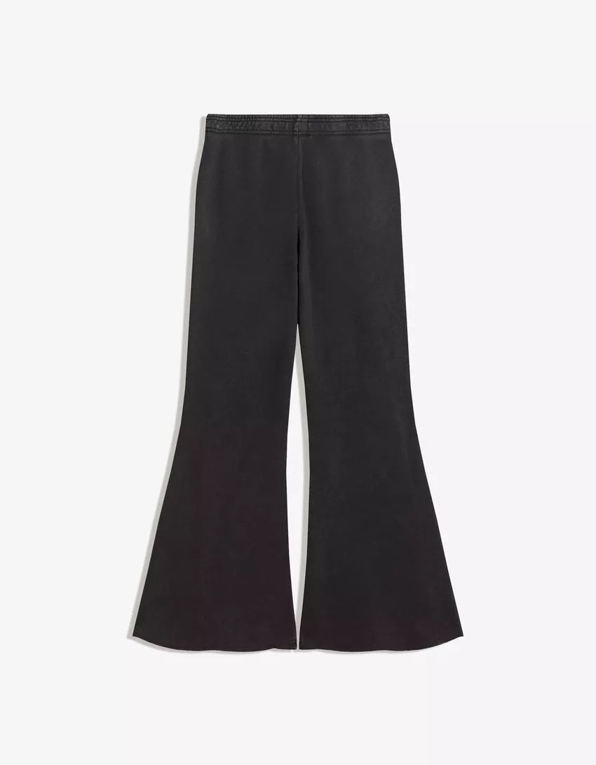 Plush flared pants with frayed hems. Available in dark grey, pink.