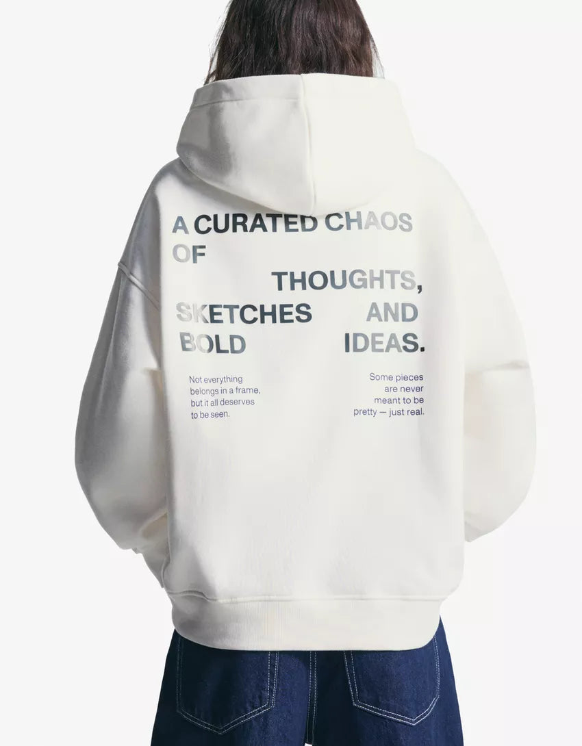Printed hoodie. Available in off white, burgundy, violet, dark grey.