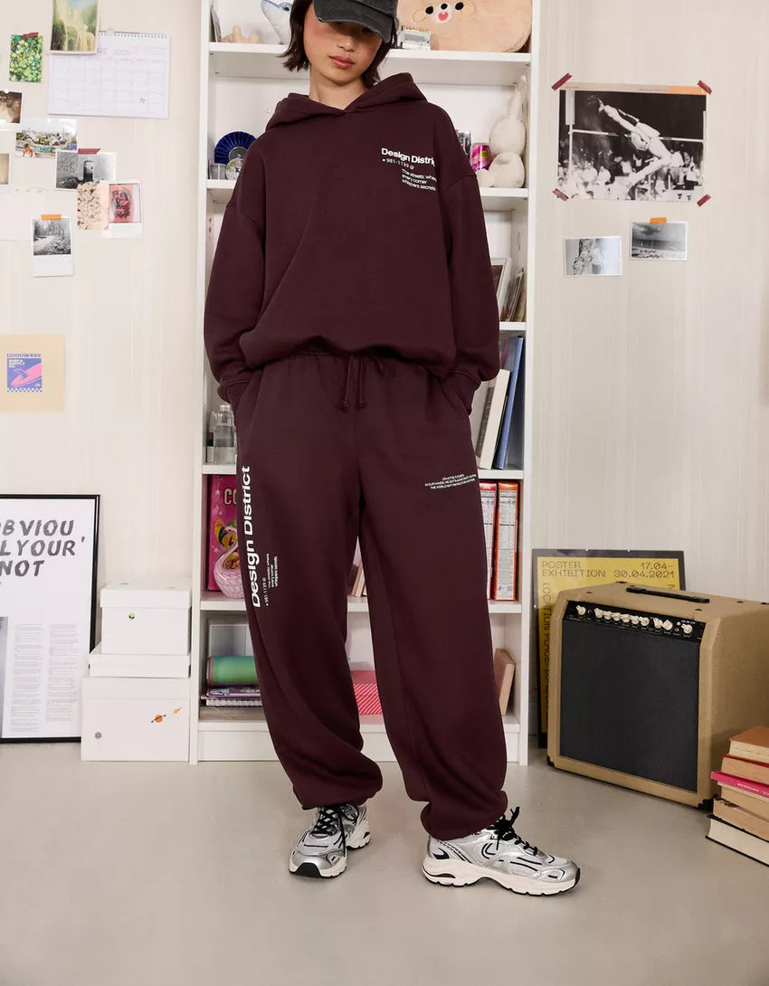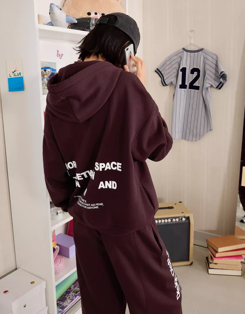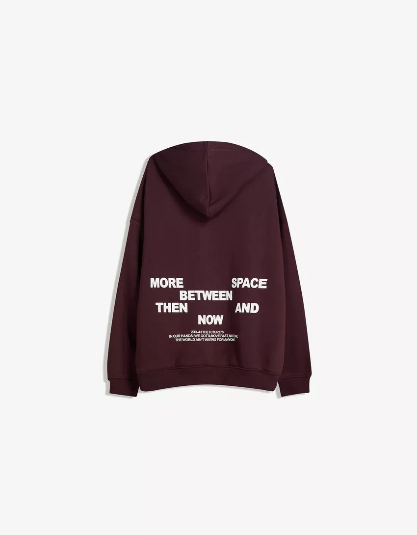 Printed hoodie. Available in burgundy, violet, off white, dark grey.