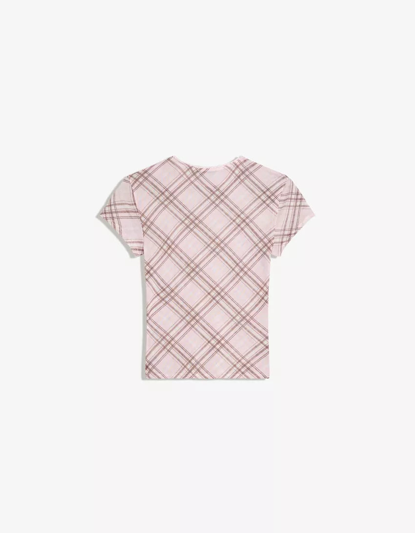 Printed short sleeve tulle T-shirt. Available in pink, navy.