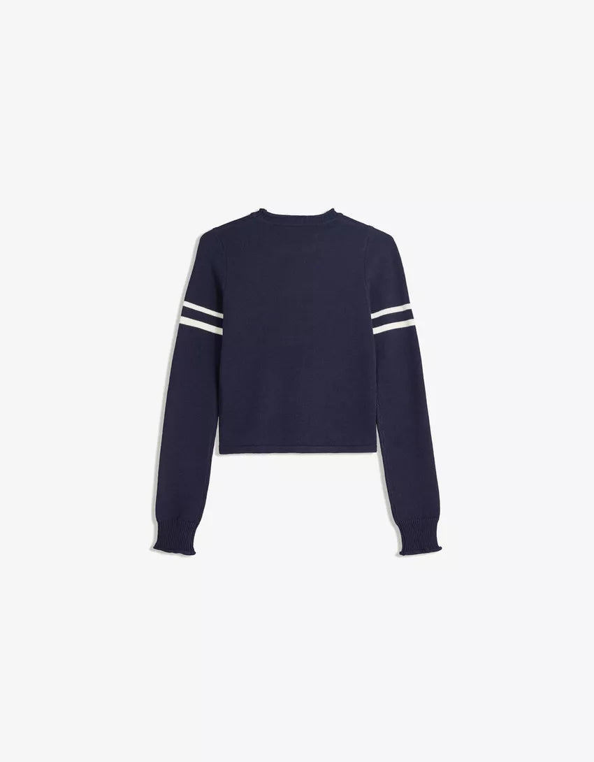 Printed sweater. Available in blue, burgundy.
