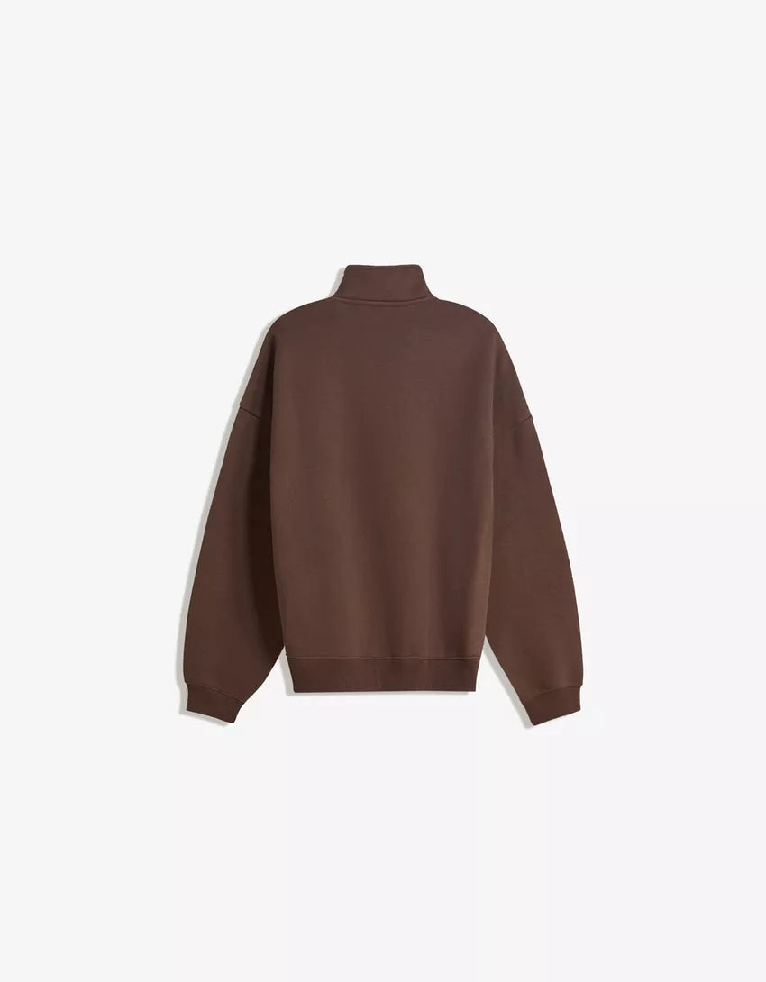 Printed zip-up neck sweatshirt. Available in brown, white.
