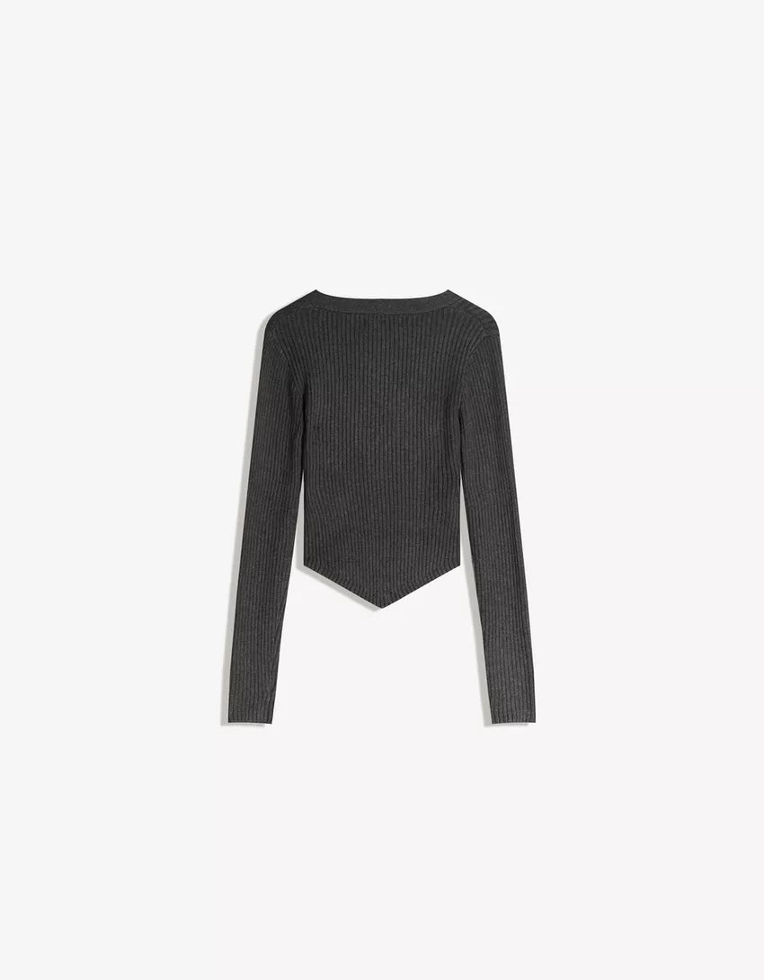 Ribbed cardigan. Available in dark grey, sand.