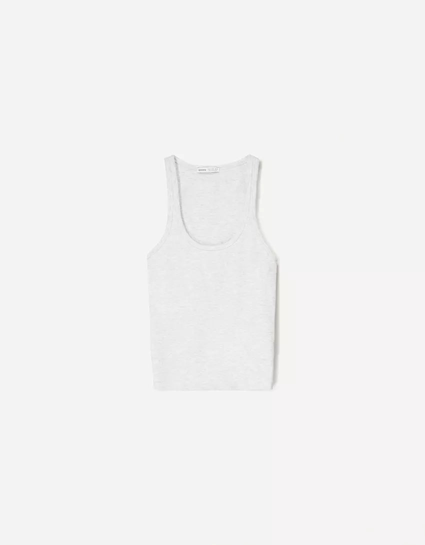 Ribbed tank top. Available in grey, off white, yellow, brown, black, khaki, white, blue.
