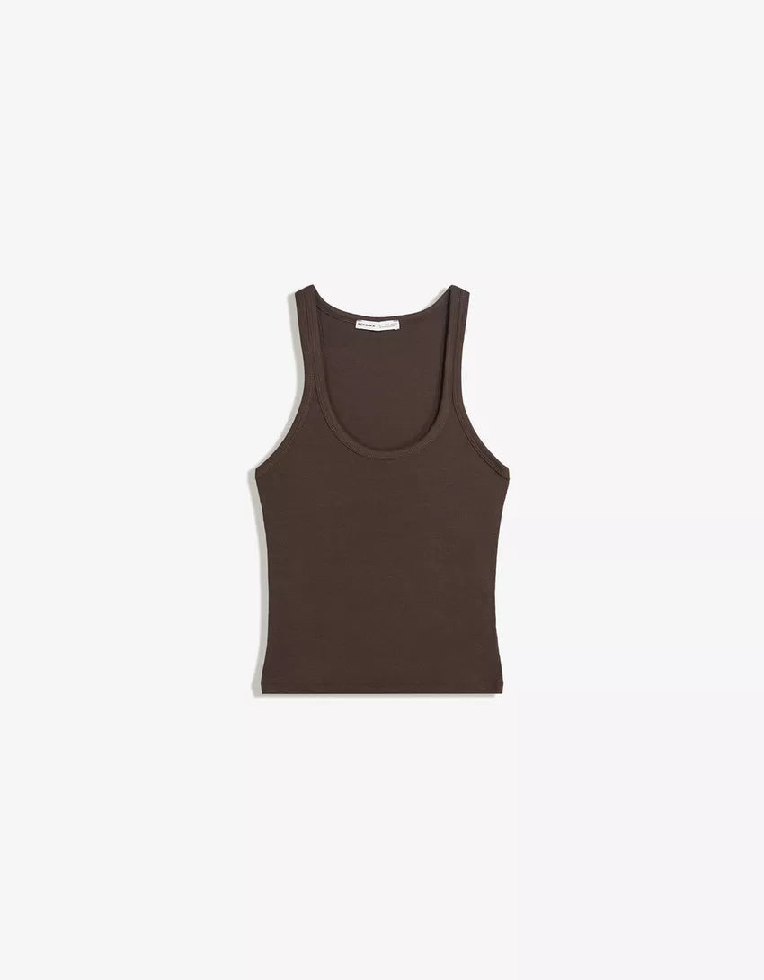Ribbed tank top. Available in brown, white, khaki, black, grey, off white, blue, yellow.