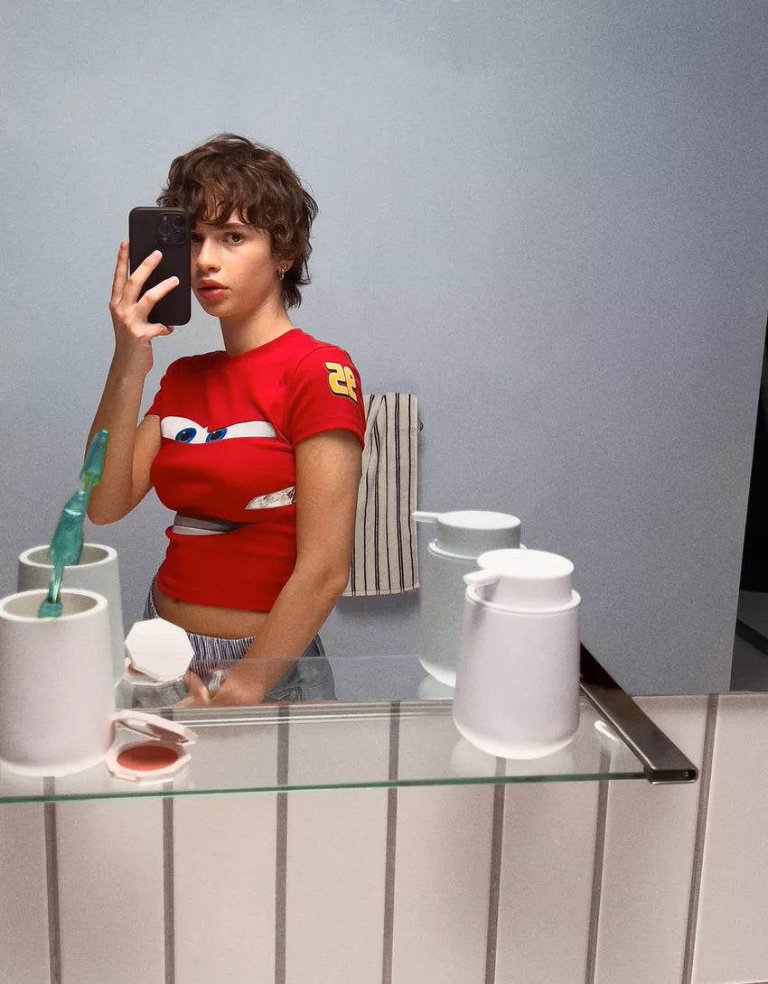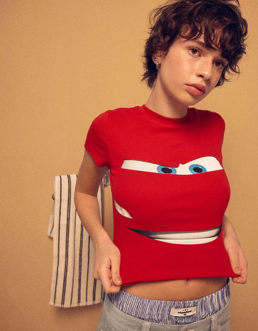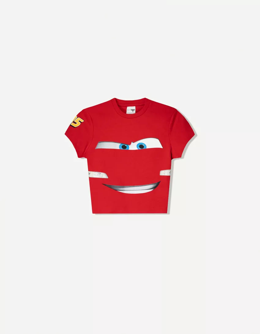 Short sleeve Cars print T-shirt. Available in red.