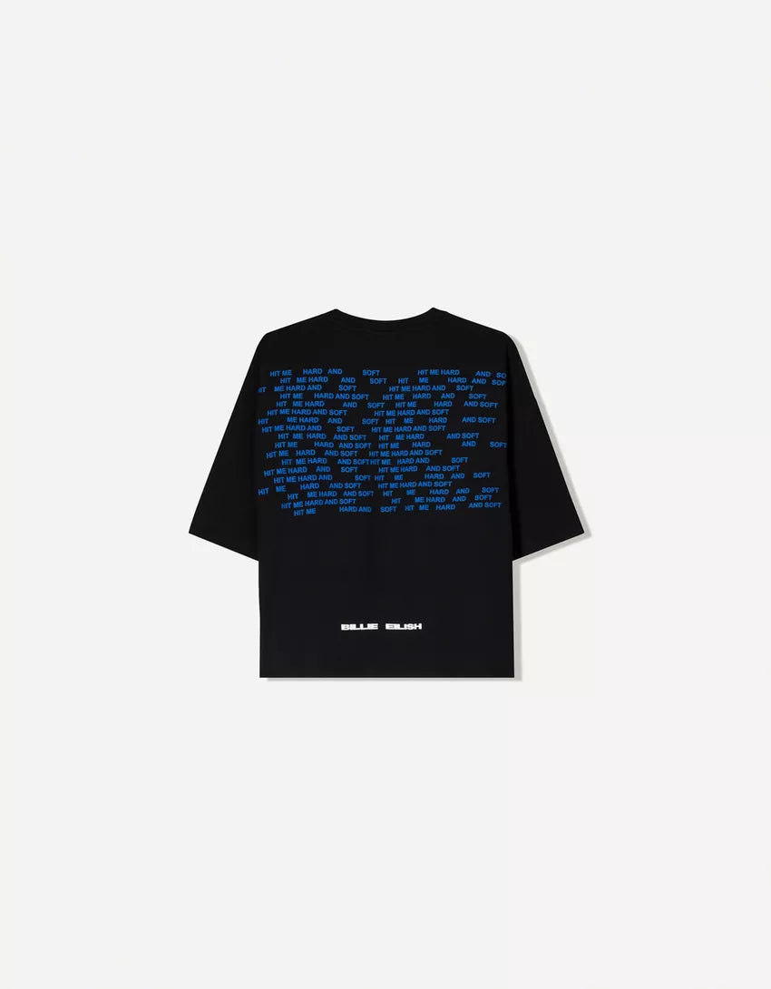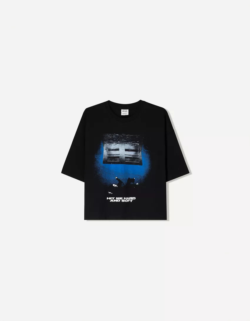 Short sleeve print T-shirt. Available in black.