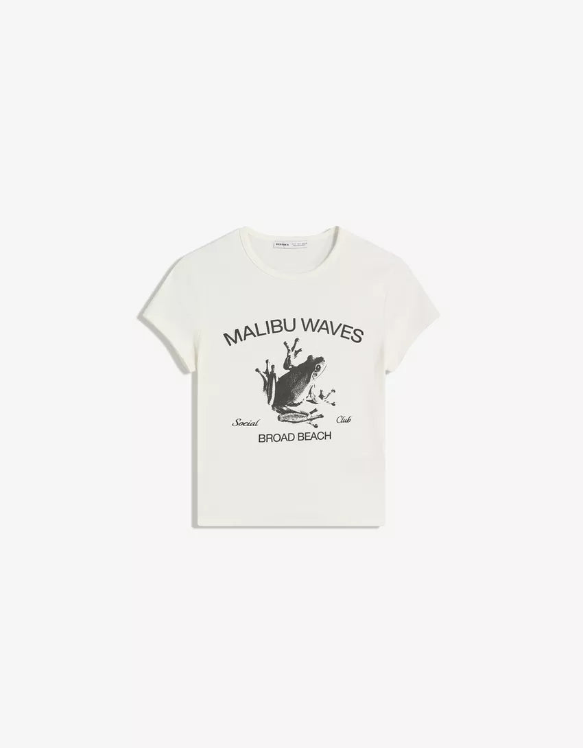 Short sleeve T-shirt with print. Available in white, dark blue, light blue, off white, yellow.