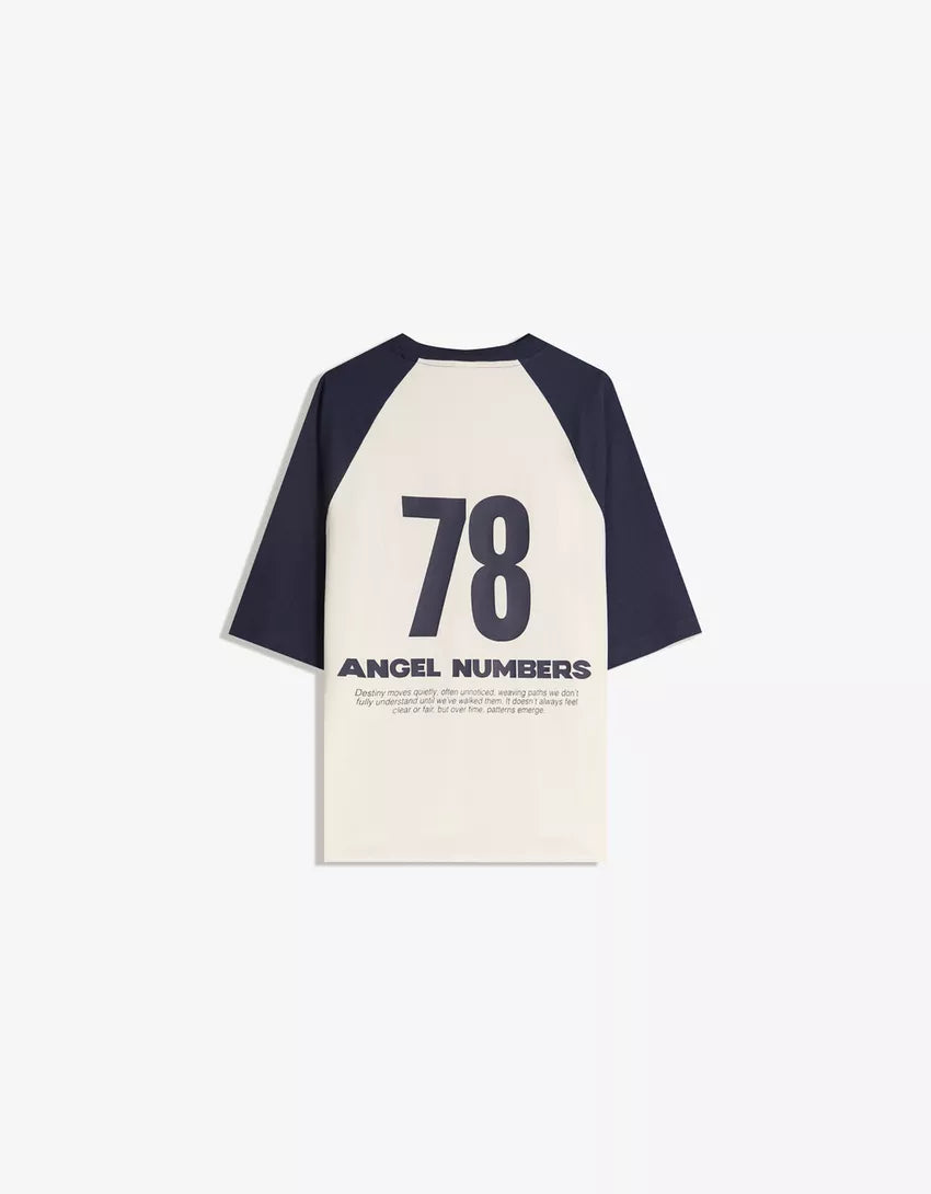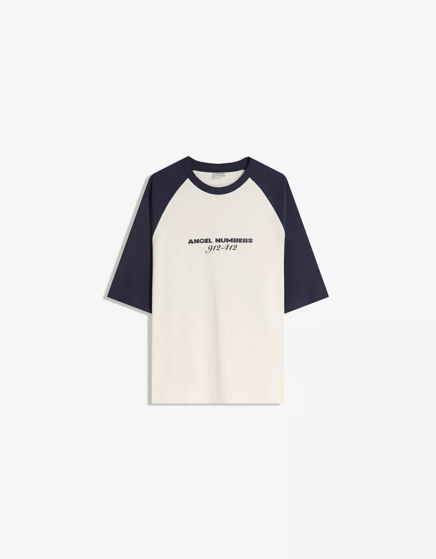 Short sleeve T-shirt with print. Available in navy, red.
