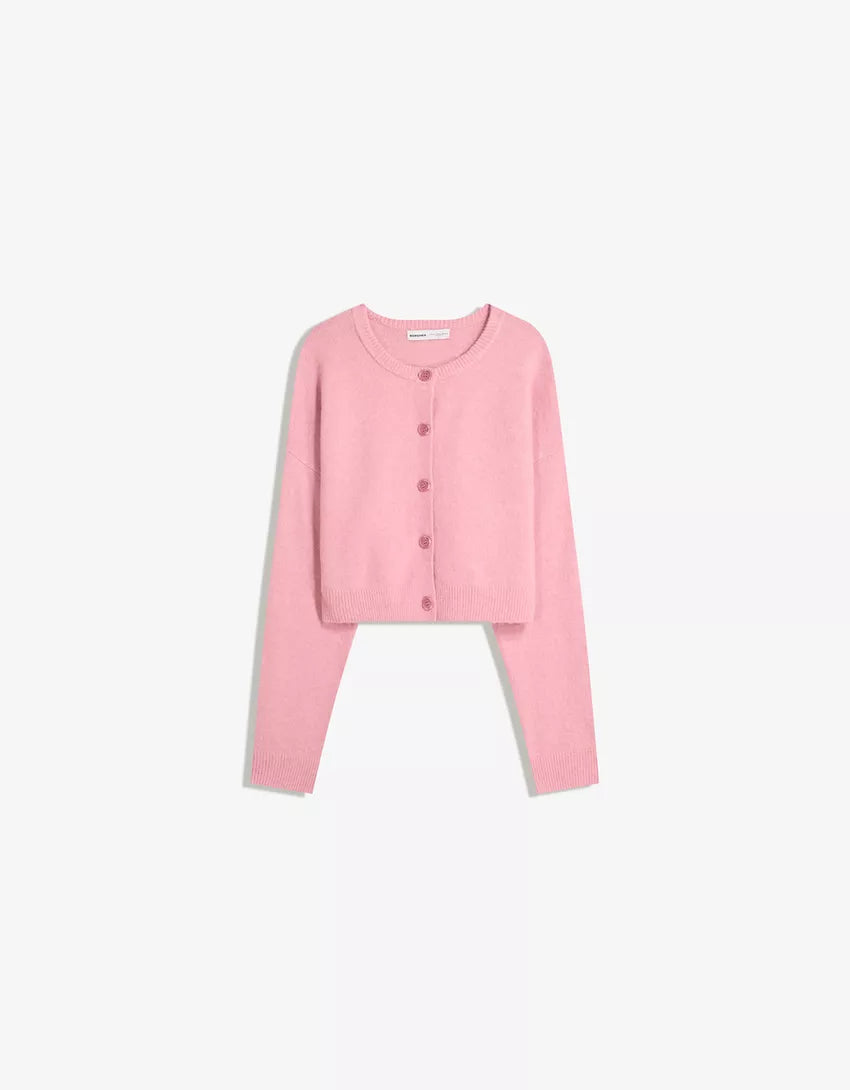 Soft touch button-up cardigan. Available in pink, blue, burgundy, grey.