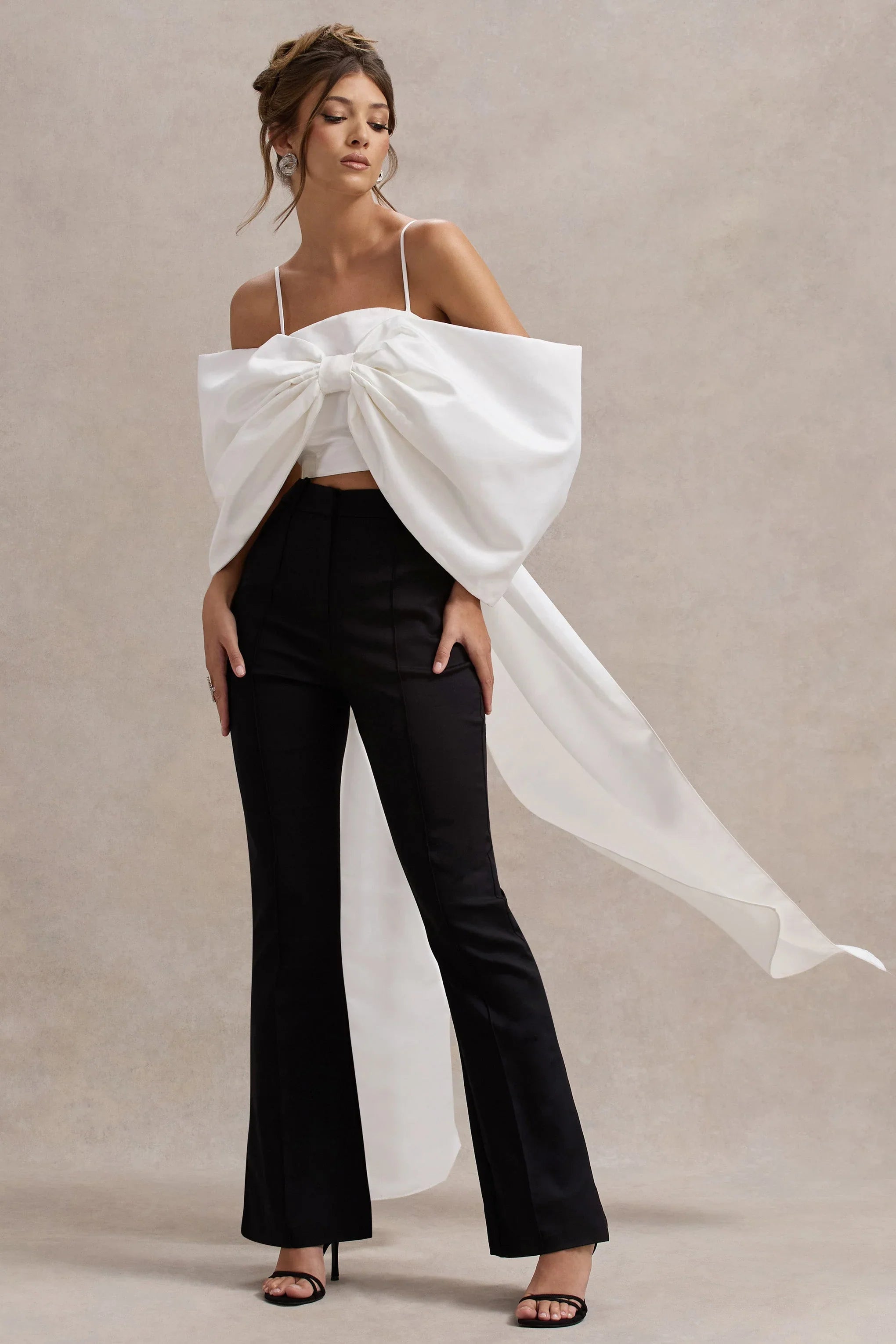 A style you'll cherish, curate a wardrobe of luxurious items starting with Souvenir. Designed in a classic white shade of our premium satin fabric, this crop top offers adjustable cami straps for a personalised custom fit. Complete with a wrapped bow design, this piece is one you won't want to leave behind.