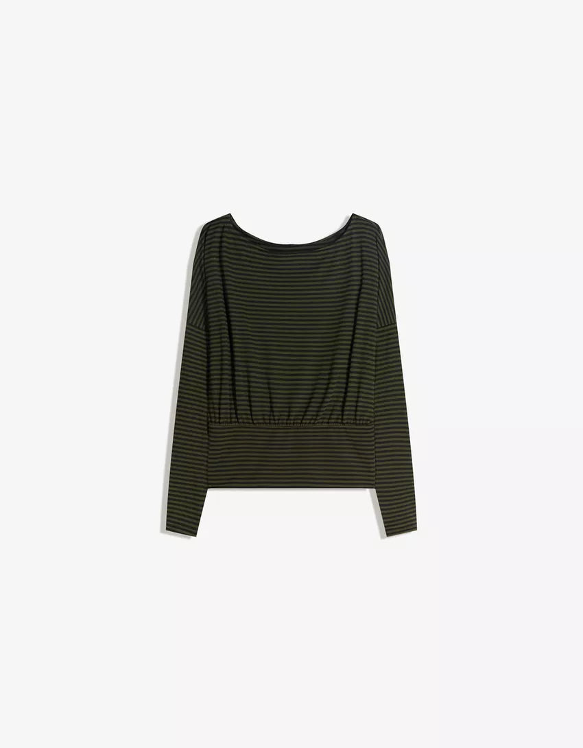 Striped long sleeve sash T-shirt. Available in khaki, dark grey, grey, black.