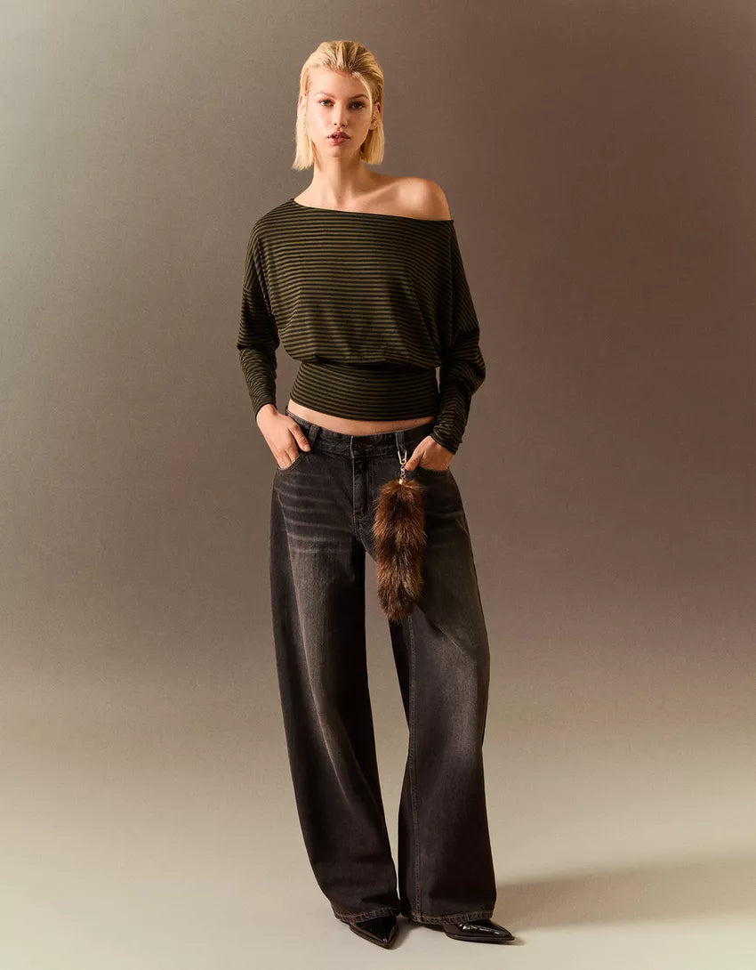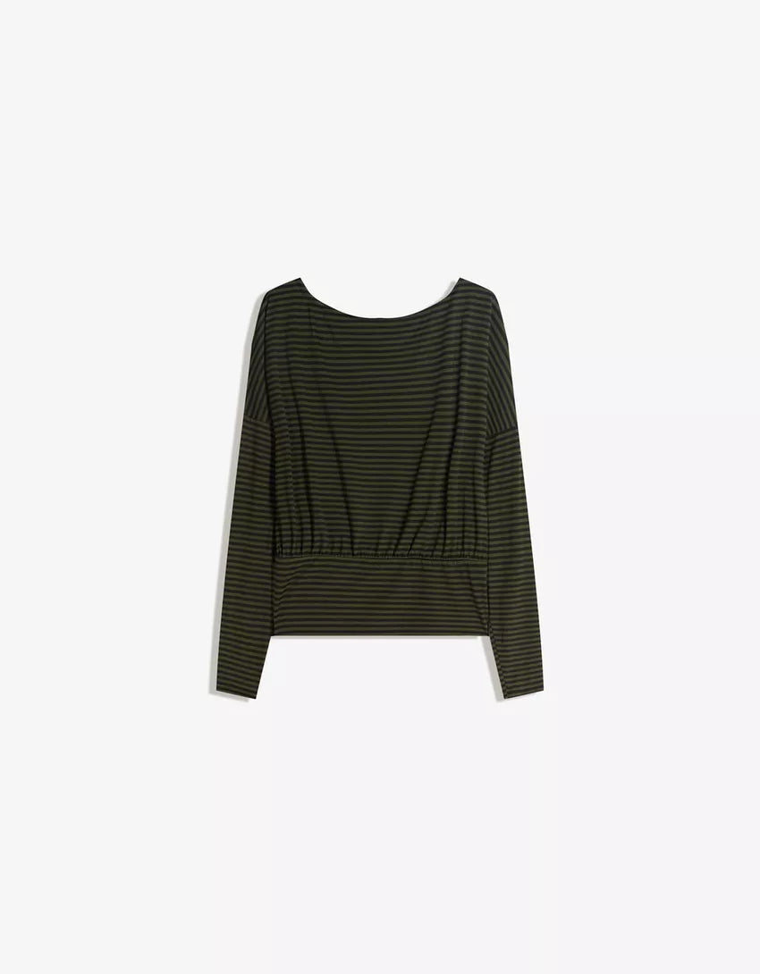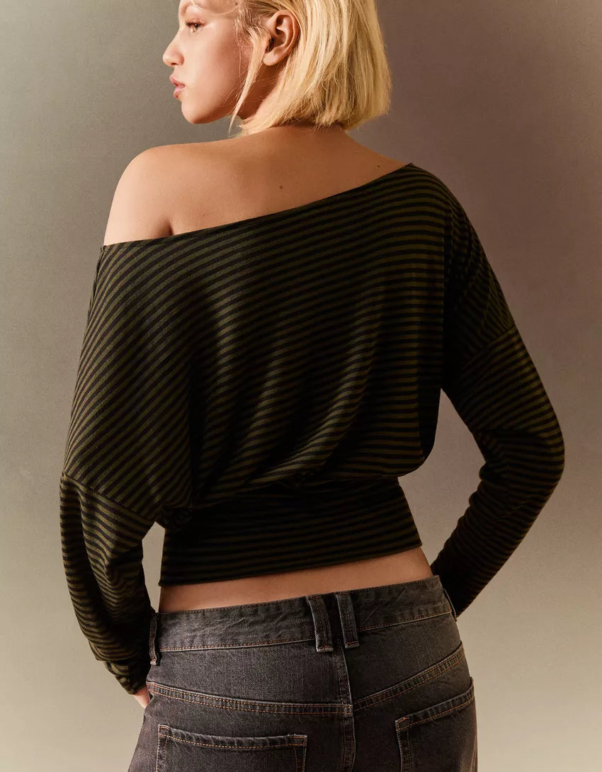 Striped long sleeve sash T-shirt. Available in khaki, dark grey, grey, black.