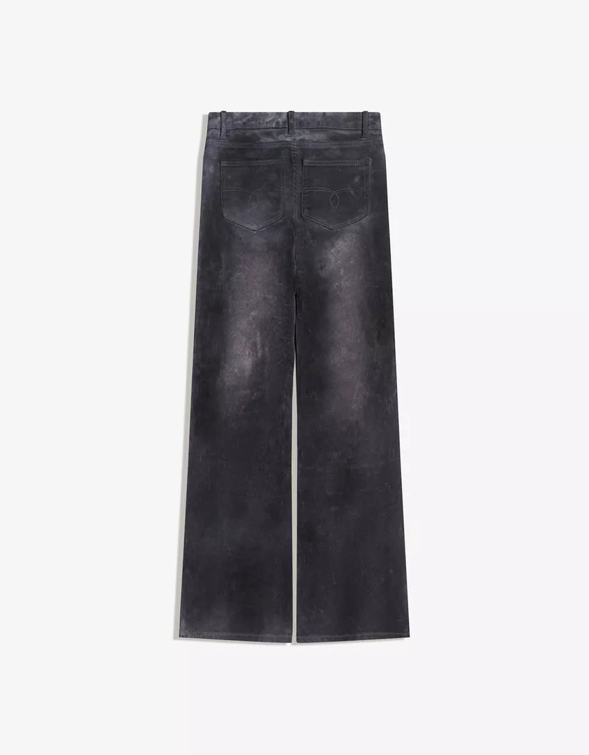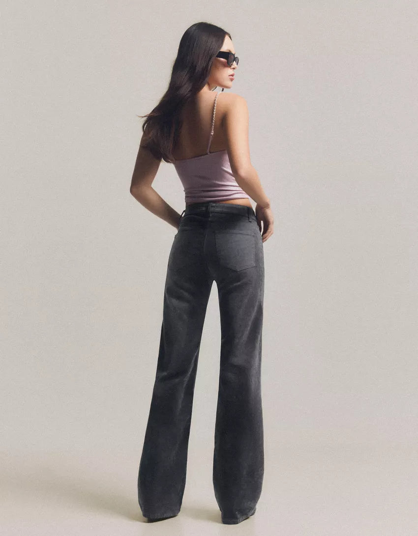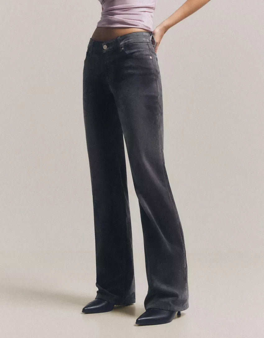 Velvet-effect bootcut jeans. Available in grey.