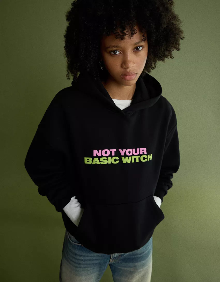 Wicked printed hood sweatshirt. Available in black.