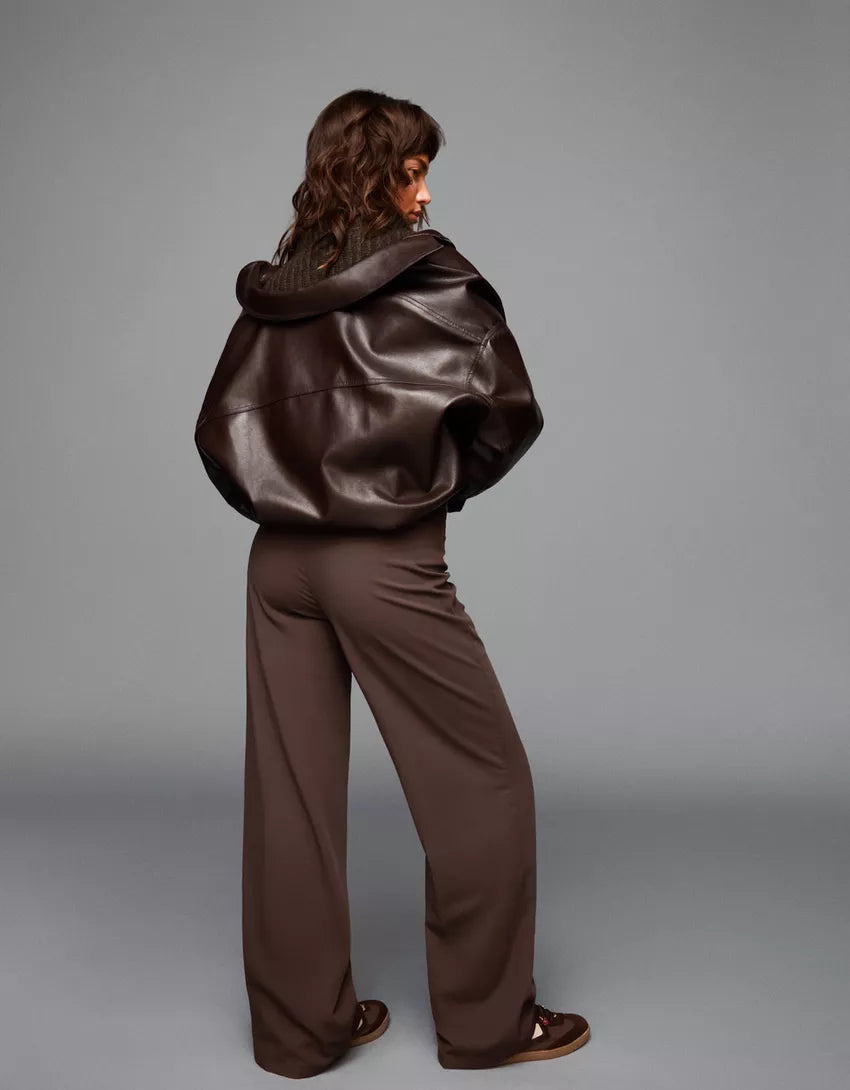 Wide-leg pants. Available in brown, white, khaki, black, grey, dark grey, burgundy.