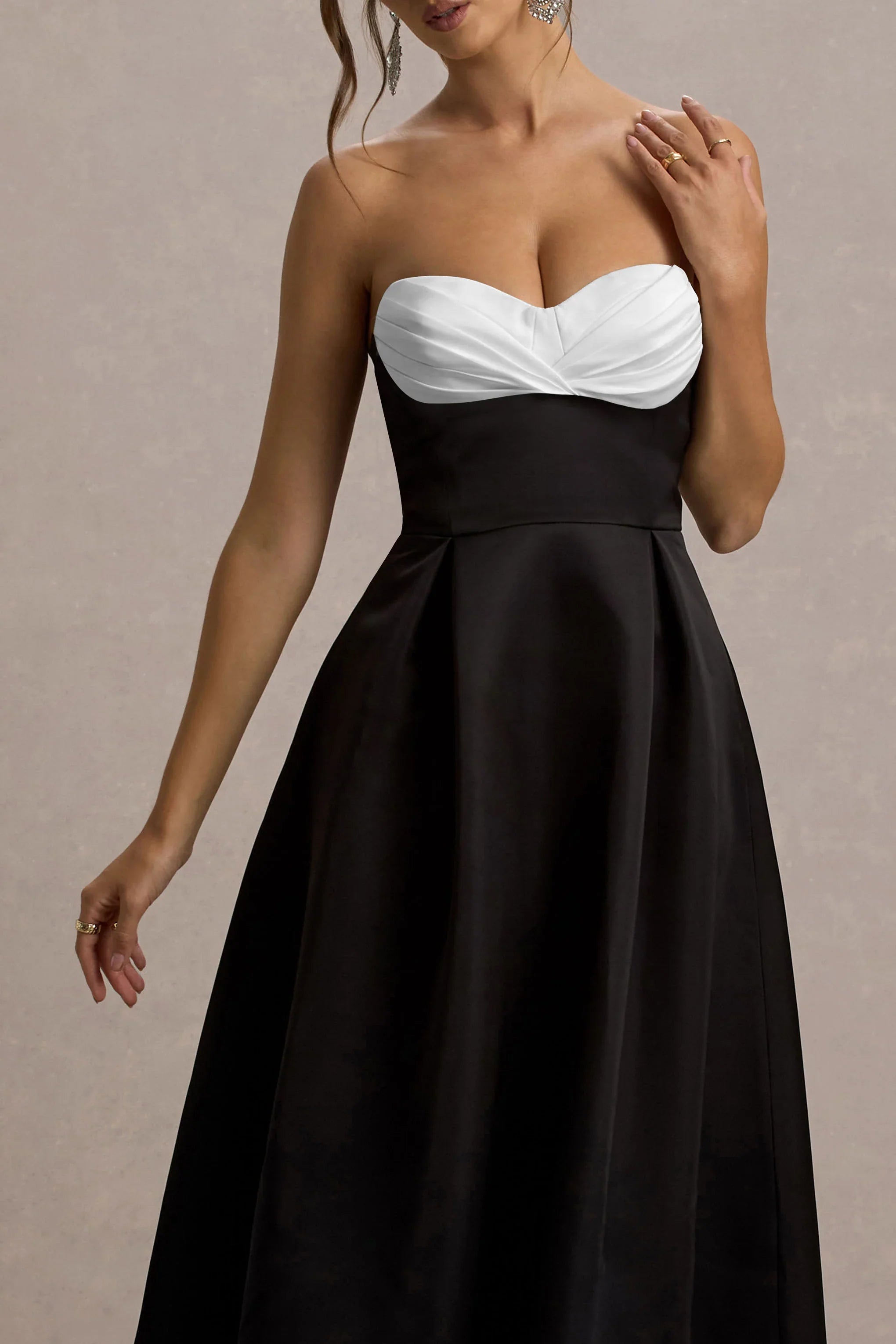 Add some feminine flair to your closet this party season with Wintour, our couture-like midi. Designed in a timeless black shade of our luxurious satin, this strapless show-stopper boasts a sweetheart neckline, boned corset bodice and fluid pleated skirt.