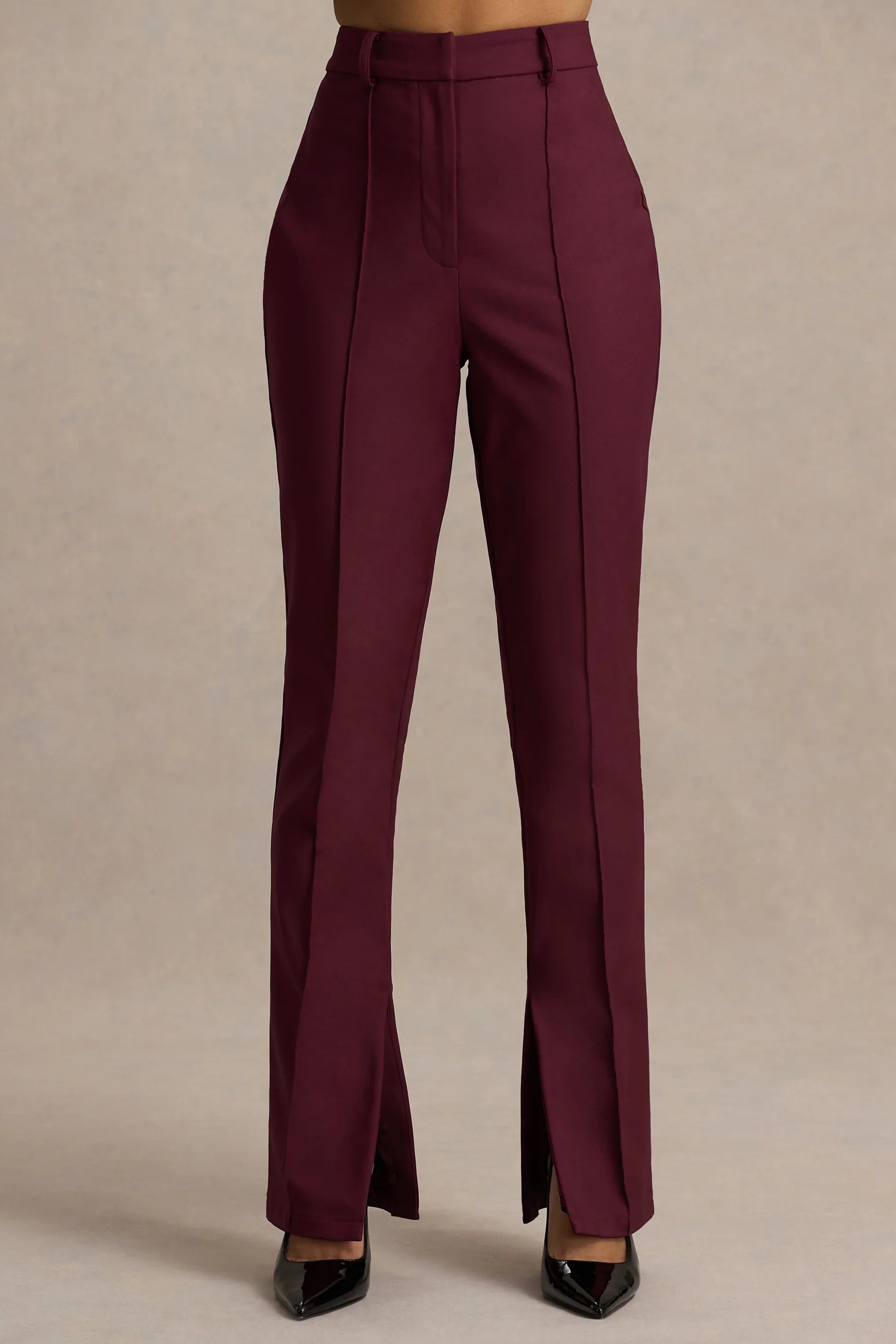 Destined for compliments, meet our bold Wonder Woman trousers in a burgundy hue, a wardrobe staple to match every occasion. Featuring a high waist fit to elongate your beautiful silhouette with a straight leg and trendy split hem to make a statement. Cut from our premium crepe fabric, these trousers can be worn with an oversized t-shirt and trainers to run some errands looking cute, or with our beautiful Valeria crop top perfect for a girl’s night out. Step in style on any occasion with this masterpiece!