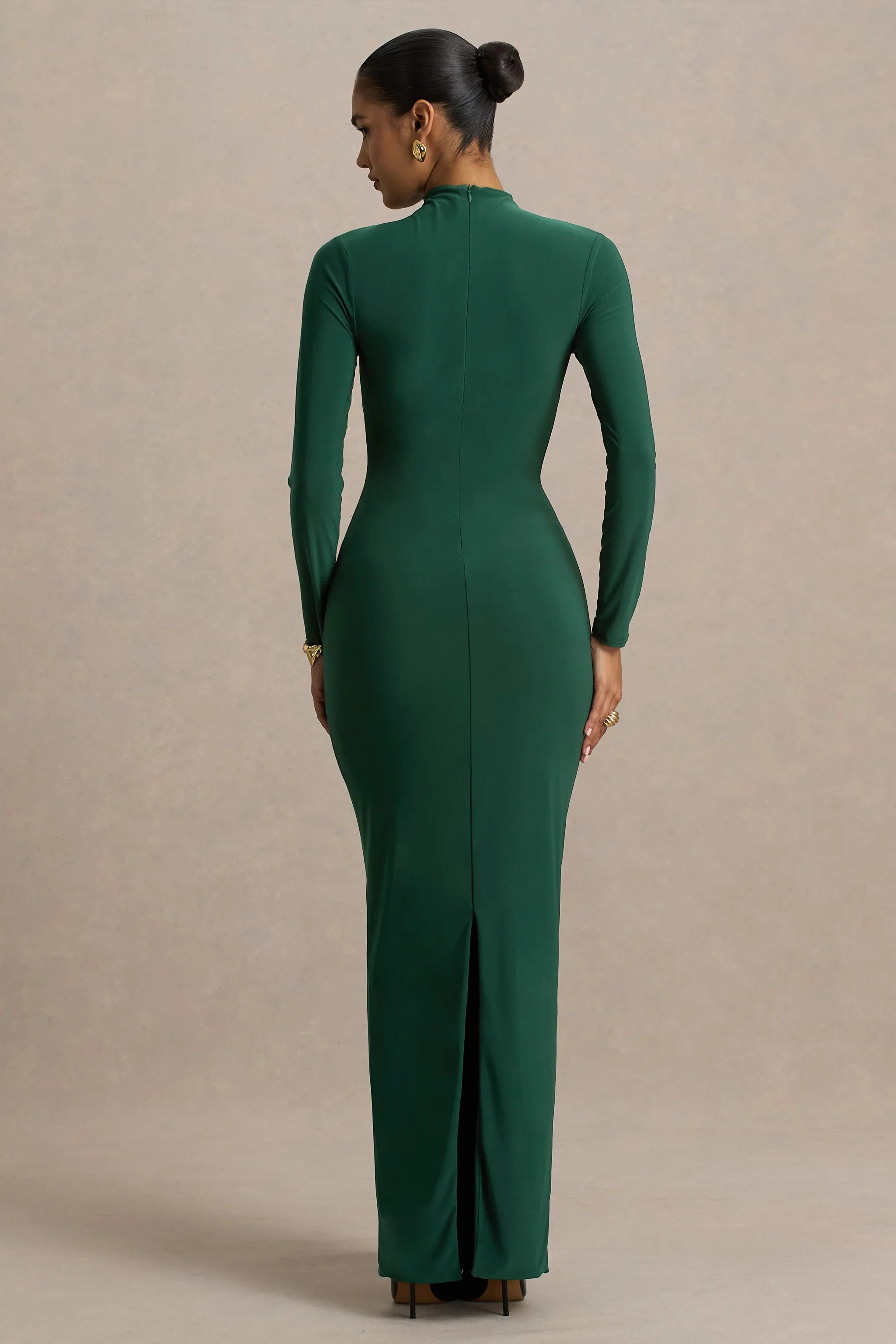 Elevate your wardrobe with the effortlessly chic Zadie. Crafted from our premium stretch jersey, in a rich teal hue, this maxi is designed to flatter your curves from every angle . The high neckline and subtle gathered detailing create an elegant, modern silhouette, while the gold hardware at the waist adds a hint of glamour. Perfect for cocktails, dinners, or any occasion where you want to make a statement.