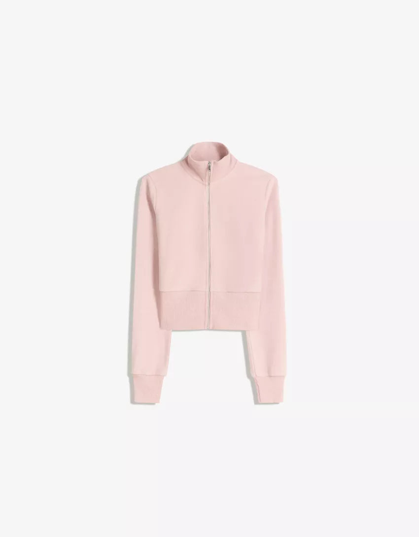 Zip-up sweatshirt. Available in pink, grey, navy.